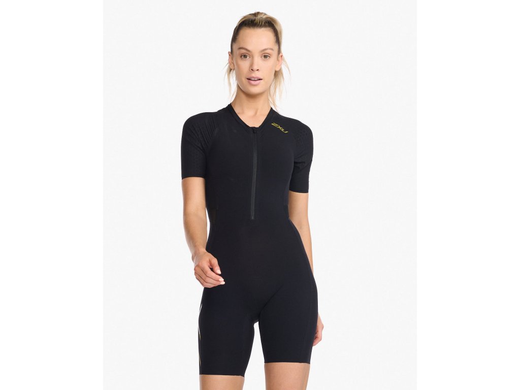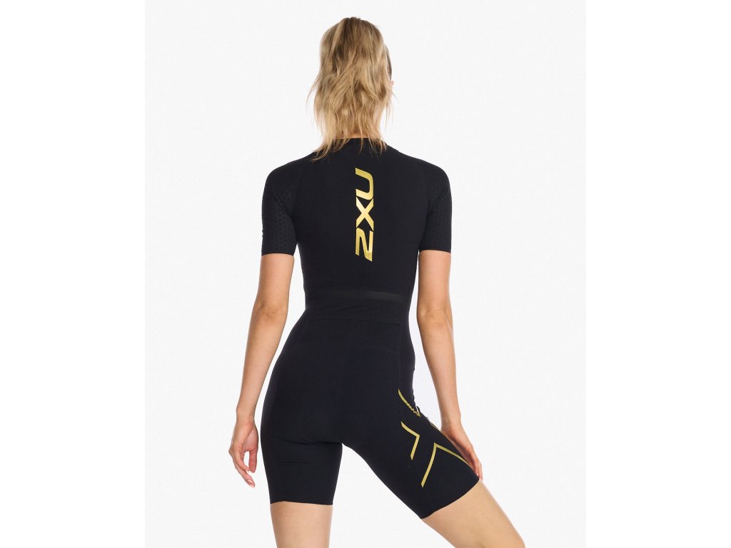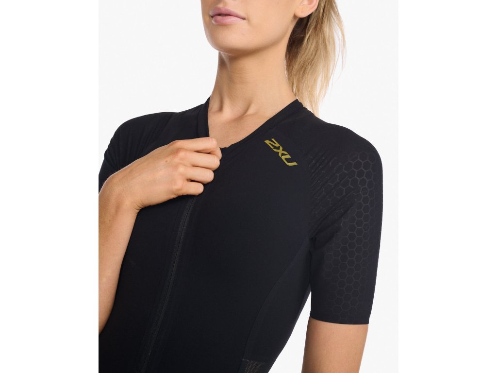 2XU Dámský tratlonový dres s rukávem 2XU Black/Copper Reflective