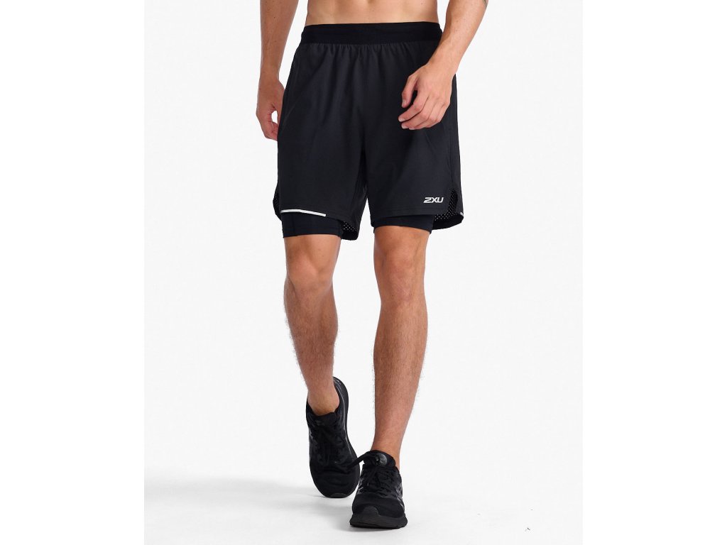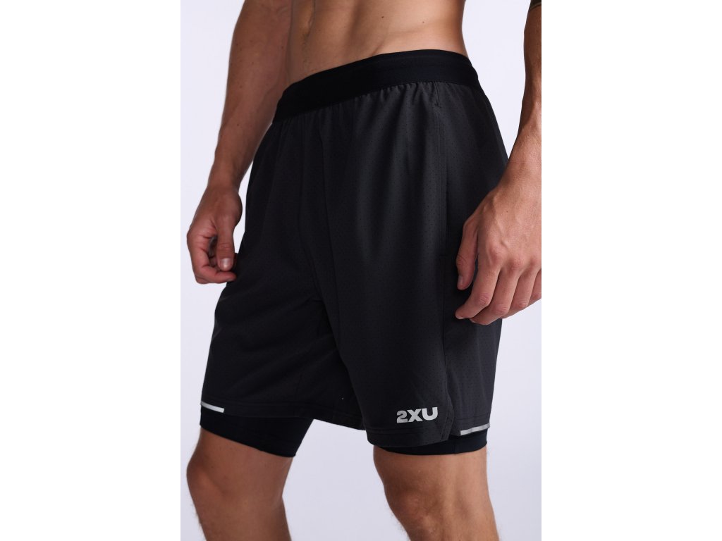 2XU Pánské kraťasy 2v1 2XU Black/Silver Reflective 7inch