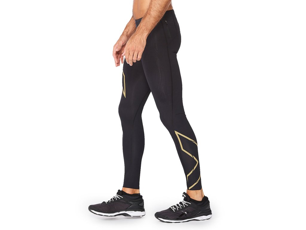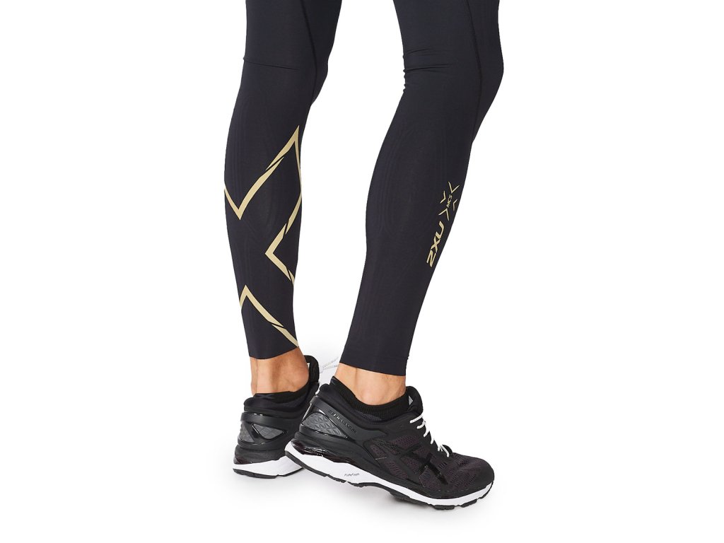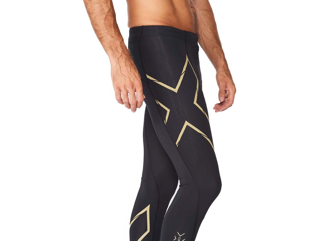 2XU Pánské lehké kompresní punčochy 2XU Black/Gold Reflective