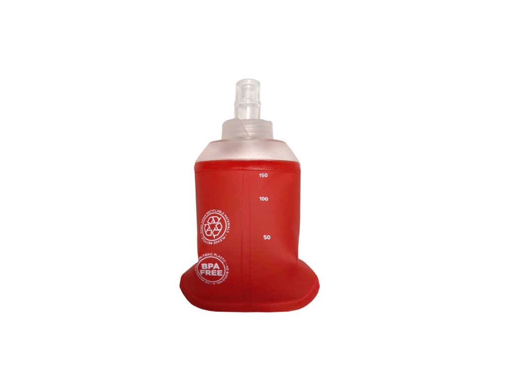 150 mililitrová měkká sportovní láhev je velmi praktická díky své flexibilitě. Kompaktní velikost je vhodná pro nošení v ruce nebo kapse. Láhev je speciálně navržena tak, aby snadno pojmula specifickou výživu, jako jsou energetické gely nebo vysoce koncentrované sacharidy pro intenzivní trénink a závody. Ventil funguje na bázi skousnutí a vyznačuje se velkým průtokem. Navíc je nepropustný, takže se nemusíte bát ulepených rukou. Kulatá základna perfektně padne do dlaně a snadno se sroluje, takže z níc vytlačíte každý gram výživy. Flaška je označena ekologickou známkou 100 % PVC & BPA-free. Je možné ji vymývat v myčce s běžným nádobím.Doplňkové parametry