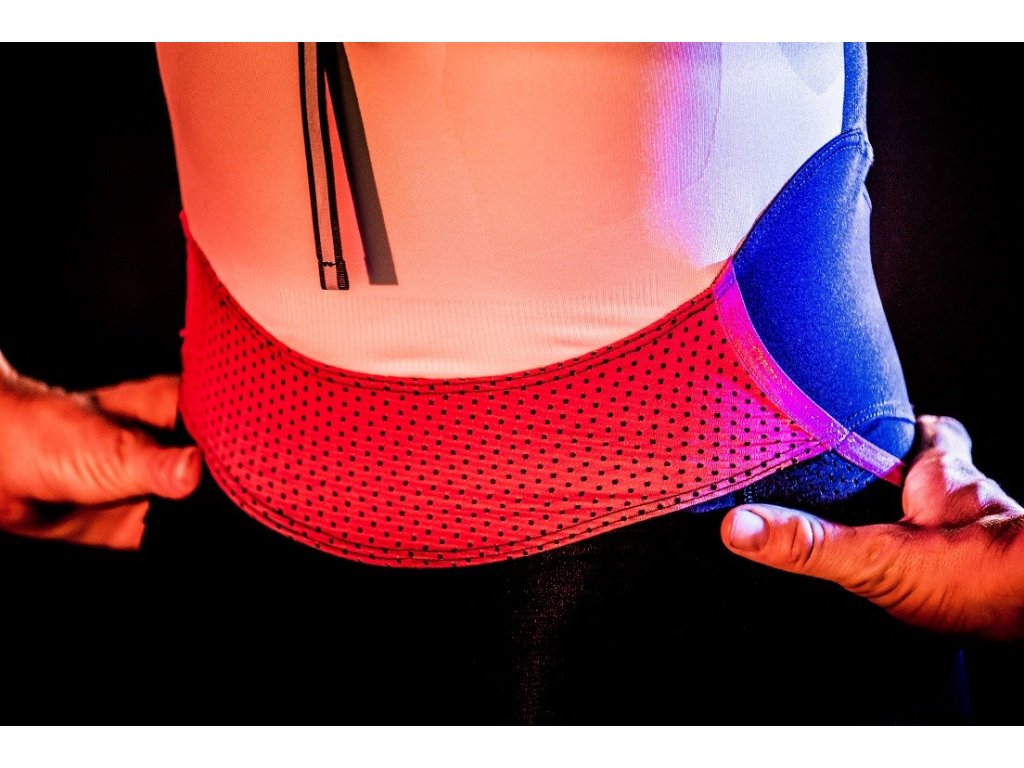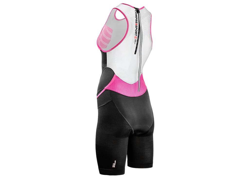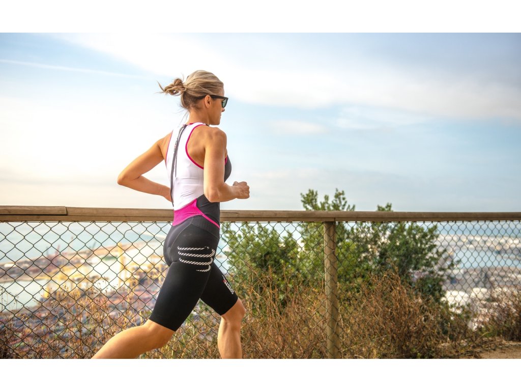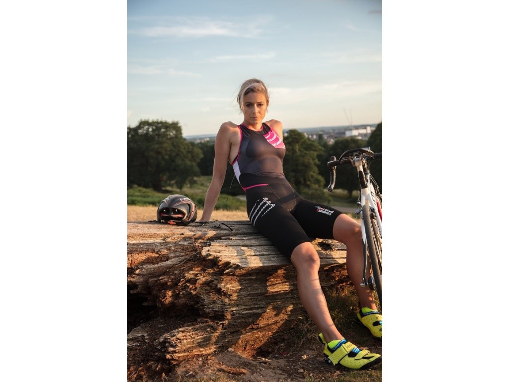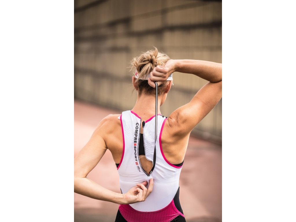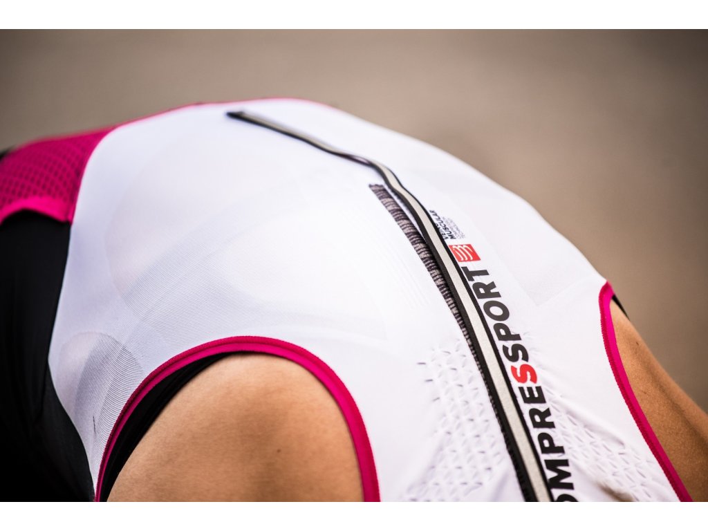 Dámská triatlonová kompresní kombinéza Kompresní triatlonová kombinéza pro náročné triatletky Chcete být při nejnáročnějších triatlonech ve vysokém komfortu a zároveň využívat všechny přednosti komprese v oblasti stehen? Kompresní triatlonová kombinéza TR3 AERO TRISUIT kombinuje veškeré výhody triatlonových šortek a přiléhavého dresu a to vše upravené přesně pro specifické křivky ženského těla.Precizní zpracování, osvědčené kompresní i ventilační zóny a důraz na pohodlí ocení triatletky každé úrovně. Panelový střih kombinuje různé tkaniny, aby byl vhodný a podporoval jednotlivé fáze triatlonového výkonu. Ventilační zóny - ventilační panely na zádech efektivně odvádějí pot a ochlazují tělo během výkonuHydrofobní tkanina - je vhodná pro plavání a také dobře odvádí potPosturální podpora - tkanina s mírnou kompresí podporuje správné držení tělaErgonomický střih - delší zádová část dresu umožňuje pohodlnou polohu během cyklistické částiVýstřih do V - měkké, velmi pružné lemování a ochrana konce zipuUltralight - dres je velmi lehký, elastický a rychleschnoucíPloché švy - zajistí absolutní pohodlí i při velmi dlouhých výkonech v náročných podmínkách, švy jsou také velmi pružnéZip na zádech - pro pohodlí a ventilaci během výkonuNohavice - řešené jako kompresní triatlonové šortky s patentovanou cyklistickou vložkouTriatlonová vložka - pohodlná, patentovaná vložka COMPRESSPORTSilikonový potisk z vnější strany triatlonové vložky pro perfektní grip na sedle.Dostatek pružných kapsiček na výživu kolem bokůDlouhá pružná kapsa pod zády, ideální na nezbytné drobnosti TABULKA VELIKOSTÍDoplňkové parametry