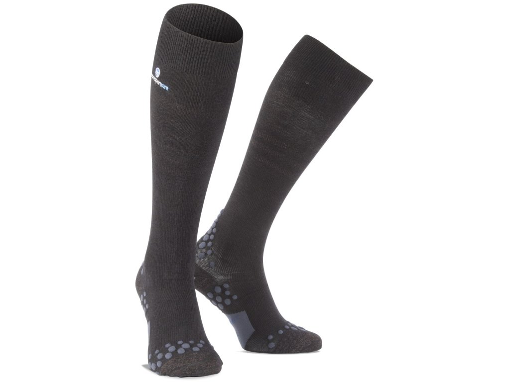 Kompresní podkolenky určené pro cestování a do práce. Kompresní podkolenky, které byly vyvinuty zejména pro cestování, nebo do pracovního prostředí. Podkolenky stimulují žilní průtok a tím tak zrychlí, a především zkvalitní, potřebnou regeneraci. Klinicky ověřená stupňovaná komprese směřovaná od chodidla směrem ke kolenu podporuje žilní návrat krve a odbourávání kyseliny mléčné. Pocit unavených nohou po výkonu, během práce nebo otoky během cestování se výrazně snižují používáním těchto podkolenek. Výstupky „3D Dots” v oblasti chodidla a Achillovy šlachy pomáhají nejen ke zvýšení proudění krve, ale poskytují také jemnou mikromasáž. Obloukový podpůrný 360° pás v oblasti klenby brání případnému shrnutí podkolenky v oblasti chodidel. Ventilační pruhy, které se nacházejí od nártu až k hornímu lemu podkolenky, slouží k lepšímu provzdušnění. Materiálové složení: 34% vlna, 28% polyamid, 12% bavlna, 12% elastan, 11% hedvábí, 3% měďDoplňkové parametry