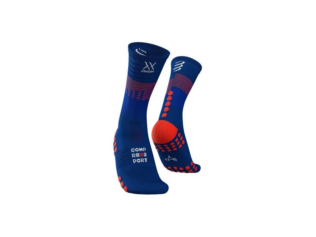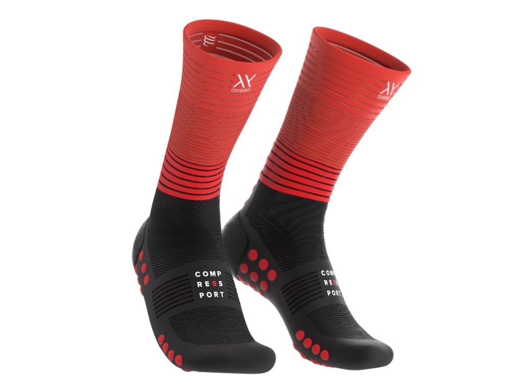 Běžecké vysoké ponožky s jedinečnou termoregulací! První mid-calf kompresní běžecké ponožky od značky COMPRESSPORT, jsou křížencem kompresních podkolenek a nízkých běžeckých ponožek. Tyto ponožky přicházejí na trh s novinkami ve využitých technologiích. Díkyěmto ponožkám využijete benefity plynoucí z komprese, jakými jsou například zrychlení žilního průtoku krve nebo rychlejší přívod kyslíku do svalů. Kompresní struktura je navržena do poloviny lýtek, kde tlumí nežádoucí otřesy, čímž se budou Vaše nohy cítit daleko lehčeji. Výstupky 3D Dots v oblasti chodidla Vám zajistí, kromě odvodu vlhkosti a potu, maximální grip k Vašim botám. Materiálové složení: 89 % Polyamide, 11 % Elastane Vyrobeno v EU. TABULKA VELIKOSTÍDoplňkové parametry