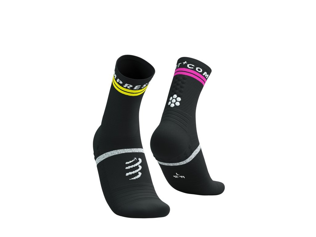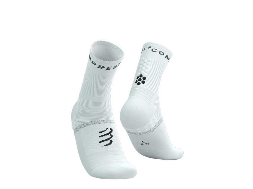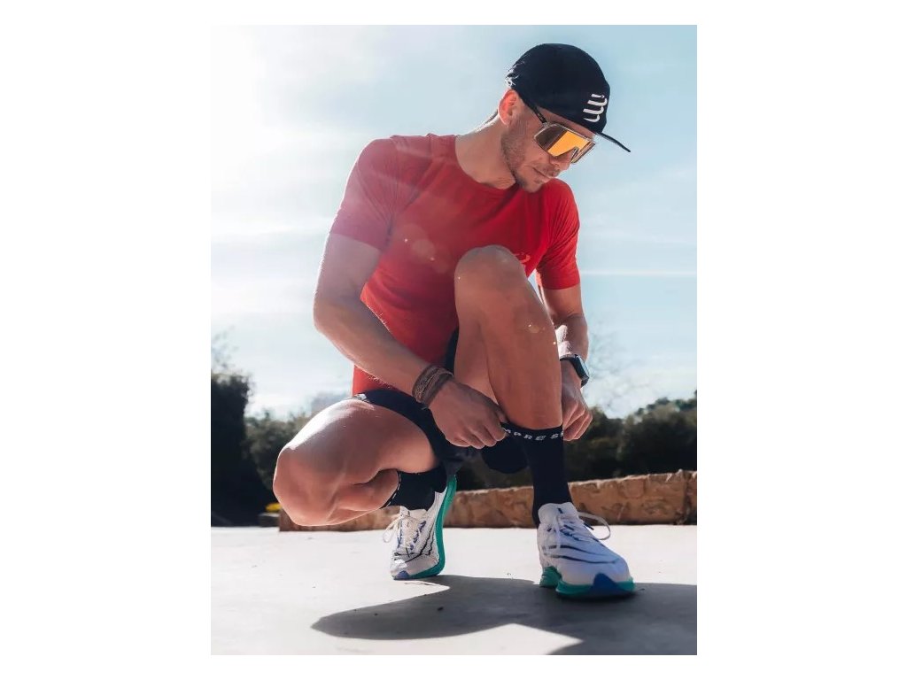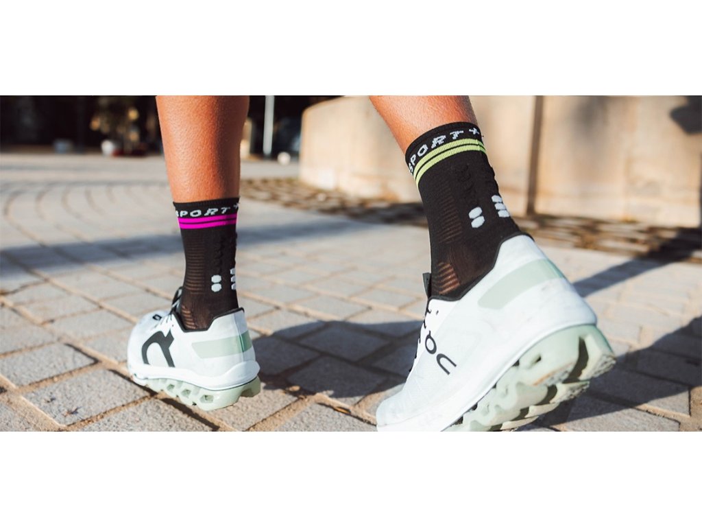 Nová řada běžeckých ponožek přináší další ventilační zóny a odlehčení. Zůstává kvalita a všechny benefity speciálního tkaní ponožek COMPRESSPORT na které jste zvyklí. Nová verze Pro Marathon ponožek. Běžecké ponožky s integrovanými PTFE vlákny, která zabraňují přehřátí pokožky a vzniku puchýřů při delších silničních závodech, a protiskluzovým páskem. Ať už se jedná o oblast kotníku, prstů nebo celého chodidla, všechny tyto problematické zóny jsou zesíleny pro eliminaci puchýřů a otlaků. Tyto partie jsou protkány teflonovými vlákny, která zabraňují přehřívání, což je jedním z hlavních důvodů vzniku puchýřů. Dále, tyto ponožky mají veškeré technologické prvky běžeckých ponožek značky COMPRESSPORT. Díky použití různých způsobů tkaní, jsou ponožky maximálně vzdušné a odvádí vlhkost, což ocení běžci nejen na dlouhých vzdálenostech. Body 3D dots, díky kterým na první pohled poznáte ponožky této švýcarské značky COMPRESSPORT, omezují pohyb ponožek v botě, drží ponožku na svém místě a dopřávají masírovací efekt. Jsou tak dalším příjemným benefitem těchto ponožek. PROTI PUCHÝŘŮM - Vysoká úroveň prevence vzniku puchýřů díky antibakteriálním PTFE vláknům, která snižují riziko přehřátí, podráždění a odřenin. PROTISKLUZOVÉ - Protiskluzové technologie včetně speciálního pásku kolem chodidla, který zabraňuje pohybu nebo mačkání tkaniny při běhu a zvyšuje přilnavost chodidla v botě. VÝJIMEČNÁ 360° PRODYŠNOST A VENTILACE - Výjimečná 360° prodyšnost a ventilace díky ultratenkým vláknům a síťovaným panelům, které udržují nohy svěží a suché i v horkých podmínkách. SLOŽENÍ - 81 % polyamid, 13 % elastan, 5 % polytetrafluorethylen, 1 % polyesterDoplňkové parametry