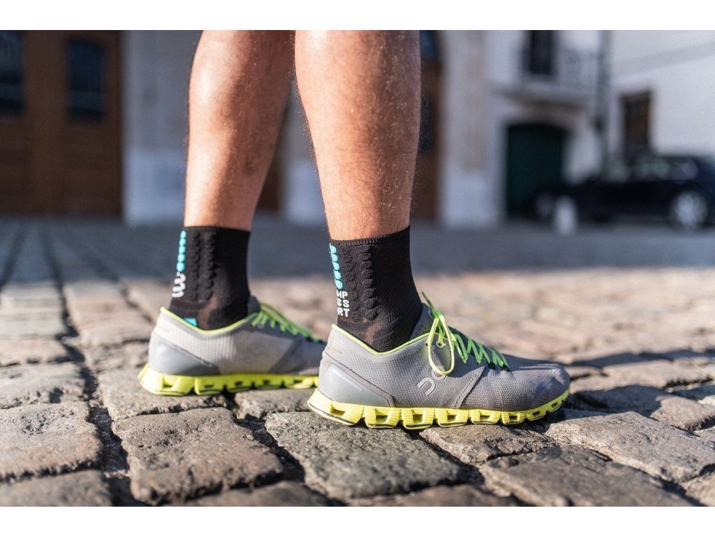 Nová řada běžeckých ponožek přináší další ventilační zóny a odlehčení. Zůstává kvality a všechny benefity speciálního tkaní ponožek COMPRESSPORT na které jste zvyklí. Tyto ponožky jsou výsledkem několikaletých studií zaměřujících se na problematiku puchýřů a otlaků zejména během dlouhých běžeckých závodů. Ať už se jedná o oblast kotníku, prstů nebo celého chodidla, všechny tyto problematické zóny jsou zesíleny pro eliminaci puchýřů a otlaků. Tyto partie jsou protkány teflonovými vlákny, která zabraňují přehřívání, což je jedním z hlavních důvodů vzniku puchýřů. Dále, tyto ponožky mají veškeré technologické prvky běžeckých ponožek značky COMPRESSPORT. Díky použití různých způsobů tkaní, jsou ponožky maximálně vzdušné a odvádí vlhkost, což ocení běžci nejen na dlouhých vzdálenostech. Body 3D dots, díky kterým na první pohled poznáte ponožky této švýcarské značky COMPRESSPORT, omezují pohyb ponožek v botě, drží ponožku na svém místě a dopřávají masírovací efekt. Jsou tak dalším příjemným benefitem těchto ponožek.Doplňkové parametry