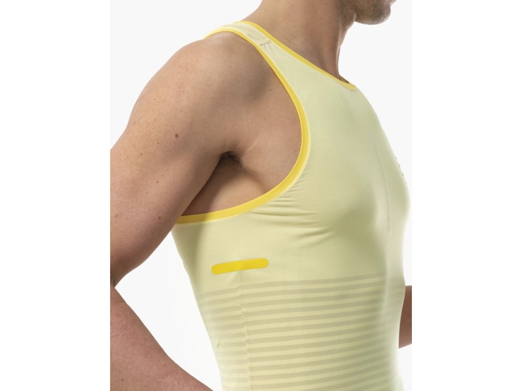 Špičkové pánské běžecké tílko s maximální ventilací, abyste mohli překonat své nejlepší výkony i v těch nejteplejších podmínkách. Lehké pánské tíčko Pro Racing Singlet se připojuje k naší špičkové řadě Racing pro běžce, kteří chtějí dosáhnout svých cílů a špičkových výkonů. Je lehčí a prodyšnější než předchozí model. Struktura pletení zajišťuje dokonalé odvětrávání a odvod potu: pruhovaný vzor Oxygen ve spodní části se kombinuje s většími otvory na zádech a hrudníku pro maximální lehkost a prodyšnost. Měkký standardní úplet nad bradavkami vás chrání před nežádoucím odíráním při zvyšující se vzdálenosti, zatímco kulatý výstřih a ploché švy hladce přiléhají k pokožce a snižují tak možnost podráždění. Reflexní detaily na zádech a bocích zvyšují viditelnost při horších světelných podmínkách. Klíčové vlastnosti: Díky lehkému materiálu je toto tílko nejlehčí v naší nabídce a je ideální pro posunutí vašeho běhu na vyšší úroveň. Téměř neucítíte, že ho máte na sobě Maximální ventilace a odvod potu díky vysoce výkonným ventilačním panelům Oxygen a cíleným větracím otvorům na přední straně, na zádech a v podpaží Žádné podráždění ani odřeniny díky měkkému bezešvému úpletu z mikrovlákna, což znamená, že nepotřebujete náplasti nebo krémy na ochranu citlivých místDoplňkové parametry