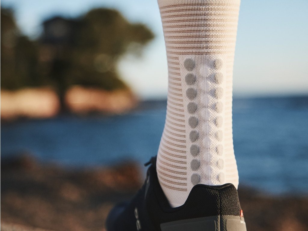 Nová generace ikonických běžeckých ponožek od značky COMPRESSPORT nabízí vynikající pohodlí, ještě lepší eliminaci puchýřů a optimální ventilaci při jakémkoliv vašem běhu! Jedná se o zboží bez obalu a visačky Nová generace ikonických běžeckých ponožek od značky COMPRESSPORT nabízí vynikající pohodlí, ještě lepší eliminaci puchýřů a optimální ventilaci při jakémkoliv vašem běhu! Lidské, sportovní výkony se posunují a s nimi i běžecké ponožky. Na začátku vývoje, zcela nové generace nejprodávanějších ponožek značky COMPRESSPORT, byli osloveni běžci od hobíků až po profíky, aby tyto ponožky vzešly z jejich potřeb a očekávání. Výsledkem jsou běžecké ponožky navržené speciálně tak, aby nabízely optimální provzdušnění, aby maximálně eliminovaly vznik puchýřů a aby byly alespoň minimálně tak pohodlné, jako jejich předchozí řada V3.0. Použitá tkanina je lehká, prodyšná, rychle odvádí vlhkost a pot, čímž vaše nohy zůstanou svěží a v suchu i v těch nejteplejších podmínkách. Zcela nová špička nabízí ergonomičtější přizpůsobení vašim prstům i vylepšenou propriocepci, což umožní prstům intuitivní polohu při dopadu pro plynulý, přirozený krok. Oblast palce je navíc obohacena froté vycpávkou, pro eliminaci zčernalých nehtů při delších bězích. Totožná technologie je umístěna také v oblasti paty. Podpora klenby je samozřejmostí. Nejen že podporuje mikrocirkulaci, ale především zabraňuje kroucení ponožky uvnitř boty. Ponožka tak zůstane přesně na svém místě a zároveň předchází vzniku puchýřů a nepříjemných otlačenin. Achillova šlacha je chráněna patentovanými výstupky. Již známé 3D DOTS, nově doplňují i takzvané FLAT DOTS, které zlepšují ventilaci. Oboje výstupky dále nalezneme v oblasti bříšek a paty. 3D DOTS (75 %) a FLAT DOTS (25%) tlumí nárazy chodidel, nabízí lepší přilnavost k botě a zlepšují celkové provzdušnění. V neposlední řadě zaručují mikrostimulaci, která pomáhá zvýšit žilní průtok a oddálit tak únavu s narůstajícími kilometry. V oblasti od kotníku až po vrchní lem ponožky, jsou navržený ventilační pruhy pro co maximální provzdušnění. Ergonomický „jazýček” v zadní části vrchního lemu dodává těmto high-tech ponožkám nádech pohodlí a elegantního designu, který jde ruku v ruce s výkonnostním DNA značky COMPRESSPORT.Buďte první, kdo napíše příspěvek k této položce.