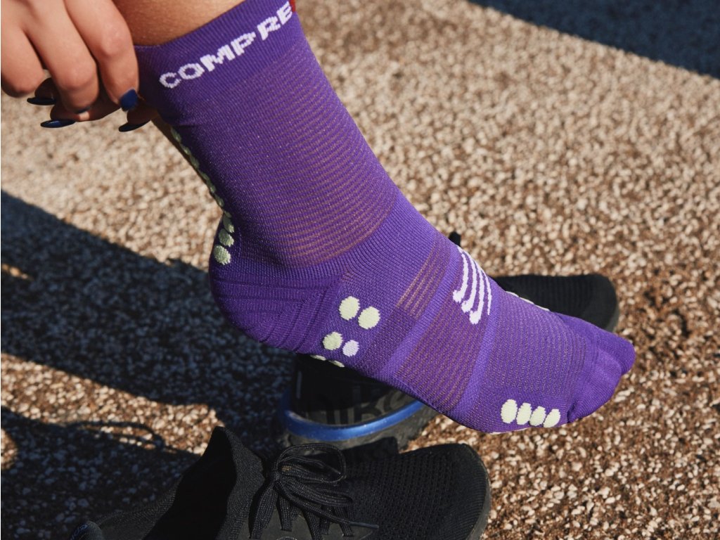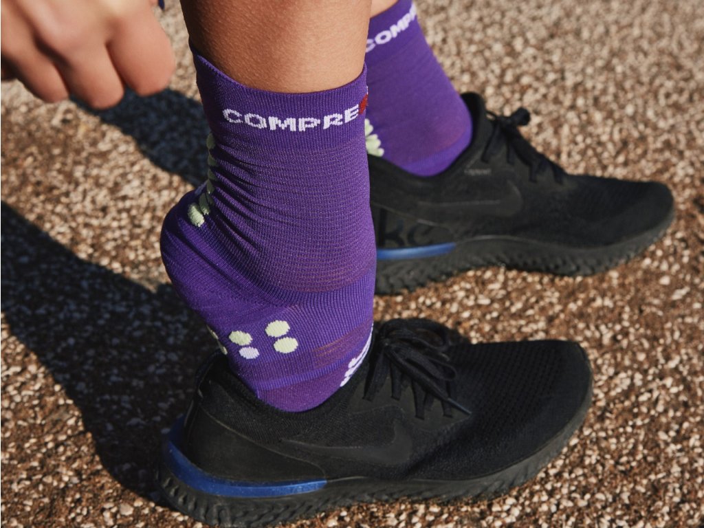 Compressport Pro Racing Socks v4.0 Run High (bez obalu) T2 Purple/Paradise Green