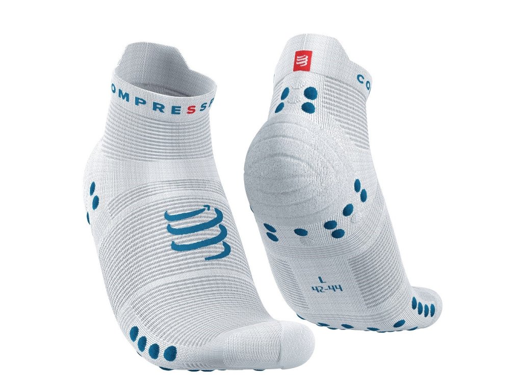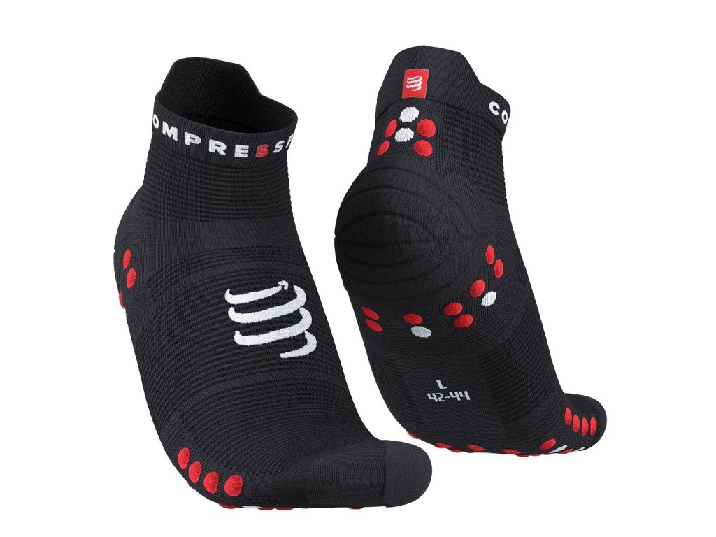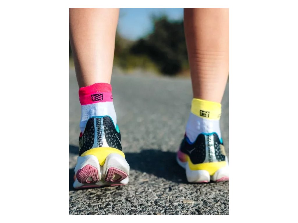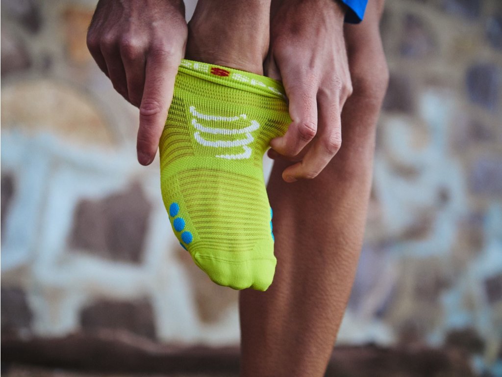 Nová generace ikonických běžeckých ponožek od značky COMPRESSPORT nabízí vynikající pohodlí, ještě lepší eliminaci puchýřů a optimální ventilaci při jakémkoliv vašem běhu! Nová generace ikonických běžeckých ponožek od značky COMPRESSPORT nabízí vynikající pohodlí, ještě lepší eliminaci puchýřů a optimální ventilaci při jakémkoliv vašem běhu! Lidské výkony se posunují a s nimi i běžecké ponožky. Na začátku vývoje zcela nové generace nejprodávanějších ponožek značky COMPRESSPORT byli osloveni běžci od hobíků až po profíky, aby tyto ponožky vzešly z jejich potřeb a očekávání. Výsledkem jsou běžecké ponožky navržené speciálně tak, aby nabízely optimální provzdušnění, aby maximálně eliminovaly vznik puchýřů a aby byly alespoň minimálně tak pohodlné, jako jejich předchozí řada V3.0. Použitá tkanina je lehká, prodyšná, rychle odvádí vlhkost a pot, čímž vaše nohy zůstanou svěží a v suchu i v těch nejteplejších podmínkách. Zcela nová špička nabízí ergonomičtější přizpůsobení vašim prstům i vylepšenou propriocepci, což umožní prstům intuitivní polohu při dopadu pro plynulý, přirozený krok. Oblast palce je navíc obohacena froté vycpávkou pro eliminaci zčernalých nehtů při delších bězích. Totožná technologie je umístěna také v oblasti paty. Podpora klenby je samozřejmostí. Nejenže podporuje mikrocirkulaci, ale především zabraňuje kroucení ponožky uvnitř boty. Ponožka tak zůstane přesně na svém místě a zároveň předchází vzniku puchýřů a nepříjemných otlačenin. Achillova šlacha je chráněna patentovanými výstupky. Již známé 3D DOTS nově doplňují i takzvané FLAT DOTS, které zlepšují ventilaci. Oboje výstupky dále nalezneme v oblasti bříšek a paty. 3D DOTS (75 %) a FLAT DOTS (25%) tlumí nárazy chodidel, nabízí lepší přilnavost k botě a zlepšují celkové provzdušnění. V neposlední řadě zaručují mikrostimulaci, která pomáhá zvýšit žilní průtok a oddálit tak únavu s narůstajícími kilometry. V oblasti od kotníku až po vrchní lem ponožky jsou navrženy ventilační pruhy pro maximální provzdušnění. Ergonomický „jazýček” v zadní části vrchního lemu dodává těmto high-tech ponožkám nádech pohodlí a elegantního designu, který jde ruku v ruce s výkonnostním DNA značky COMPRESSPORT.Doplňkové parametry