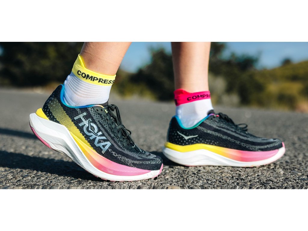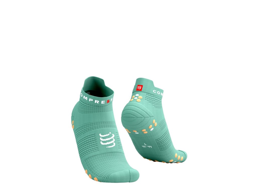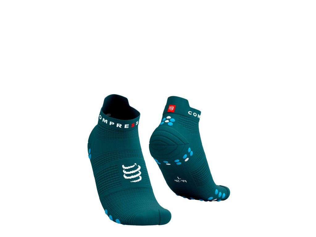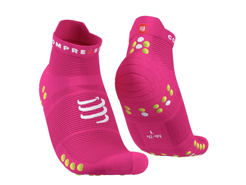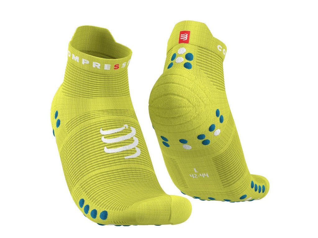 Nová generace ikonických běžeckých ponožek od značky COMPRESSPORT nabízí vynikající pohodlí, ještě lepší eliminaci puchýřů a optimální ventilaci při jakémkoliv vašem běhu! Nová generace ikonických běžeckých ponožek od značky COMPRESSPORT nabízí vynikající pohodlí, ještě lepší eliminaci puchýřů a optimální ventilaci při jakémkoliv vašem běhu! Lidské výkony se posunují a s nimi i běžecké ponožky. Na začátku vývoje zcela nové generace nejprodávanějších ponožek značky COMPRESSPORT byli osloveni běžci od hobíků až po profíky, aby tyto ponožky vzešly z jejich potřeb a očekávání. Výsledkem jsou běžecké ponožky navržené speciálně tak, aby nabízely optimální provzdušnění, aby maximálně eliminovaly vznik puchýřů a aby byly alespoň minimálně tak pohodlné, jako jejich předchozí řada V3.0. Použitá tkanina je lehká, prodyšná, rychle odvádí vlhkost a pot, čímž vaše nohy zůstanou svěží a v suchu i v těch nejteplejších podmínkách. Zcela nová špička nabízí ergonomičtější přizpůsobení vašim prstům i vylepšenou propriocepci, což umožní prstům intuitivní polohu při dopadu pro plynulý, přirozený krok. Oblast palce je navíc obohacena froté vycpávkou pro eliminaci zčernalých nehtů při delších bězích. Totožná technologie je umístěna také v oblasti paty. Podpora klenby je samozřejmostí. Nejenže podporuje mikrocirkulaci, ale především zabraňuje kroucení ponožky uvnitř boty. Ponožka tak zůstane přesně na svém místě a zároveň předchází vzniku puchýřů a nepříjemných otlačenin. Achillova šlacha je chráněna patentovanými výstupky. Již známé 3D DOTS nově doplňují i takzvané FLAT DOTS, které zlepšují ventilaci. Oboje výstupky dále nalezneme v oblasti bříšek a paty. 3D DOTS (75 %) a FLAT DOTS (25%) tlumí nárazy chodidel, nabízí lepší přilnavost k botě a zlepšují celkové provzdušnění. V neposlední řadě zaručují mikrostimulaci, která pomáhá zvýšit žilní průtok a oddálit tak únavu s narůstajícími kilometry. V oblasti od kotníku až po vrchní lem ponožky jsou navrženy ventilační pruhy pro maximální provzdušnění. Ergonomický „jazýček” v zadní části vrchního lemu dodává těmto high-tech ponožkám nádech pohodlí a elegantního designu, který jde ruku v ruce s výkonnostním DNA značky COMPRESSPORT.Doplňkové parametry
