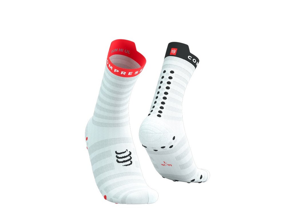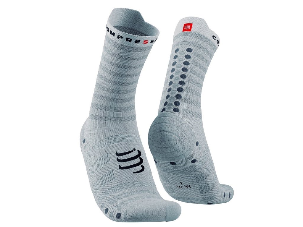 Nová generace ikonických běžeckých ponožek od značky COMPRESSPORT nabízí vynikající pohodlí, ještě lepší eliminaci puchýřů a optimální ventilaci při jakémkoliv vašem běhu! Nová generace ultralehkých, maximálně prodyšných běžeckých ponožek, která byla vyvinuta pro ještě efektivnější termoregulaci odvod potu v horkých podmínkách! Lehká, technická síťovina je navržena tak, aby seděla doslova jako druhá kůže na vaší noze. Tyto ponožky nabízí výjimečnou ventilaci a velmi rychle odvádí pot a vlhkost od chodidla. Zcela nová špička nabízí ergonomičtější přizpůsobení vašim prstům i vylepšenou propriocepci, což umožní prstům intuitivní polohu při dopadu pro plynulý, přirozený krok. Oblast palce je navíc obohacena froté vycpávkou, pro eliminaci zčernalých nehtů při delších bězích. Vylepšená podpora klenby je samozřejmostí. Nejen že podporuje mikrocirkulaci, ale především zabraňuje kroucení ponožky uvnitř boty. Ponožka tak zůstane přesně na svém místě a zároveň předchází vzniku puchýřů a nepříjemných otlačenin. Charakteristické výstupky 3D DOTS jsou u tohoto modelu doplněny novými MESH-DOTS, které ještě více snižují hmotnost celé ponožky, ale na straně druhé zvyšují její prodyšnost. Výstupky jsou navrženy v oblasti Achillovy šlachy, na chodidle před patou a na bříškách. Tlumí nárazy chodidel, nabízí lepší přilnavost k botě a zlepšují celkové provzdušnění. V neposlední řadě zaručují mikrostimulaci, která pomáhá zvýšit žilní průtok a oddálit tak únavu s narůstajícími kilometry. Ergonomický „jazýček” v zadní části vrchního lemu dodává těmto high-tech ponožkám nádech pohodlí a elegantního designu, který jde ruku v ruce s výkonnostním DNA značky COMPRESSPORT.Doplňkové parametry