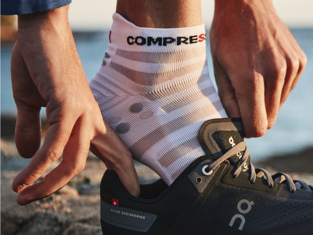 Nová generace ikonických běžeckých ponožek od značky COMPRESSPORT nabízí vynikající pohodlí, ještě lepší eliminaci puchýřů a optimální ventilaci při jakémkoliv vašem běhu! Nová generace ultralehkých, maximálně prodyšných běžeckých ponožek, která byla vyvinuta pro ještě efektivnější termoregulaci odvod potu v horkých podmínkách! Lehká, technická síťovina je navržena tak, aby seděla doslova jako druhá kůže na vaší noze. Tyto ponožky nabízí výjimečnou ventilaci a velmi rychle odvádí pot a vlhkost od chodidla. Zcela nová špička nabízí ergonomičtější přizpůsobení vašim prstům i vylepšenou propriocepci, což umožní prstům intuitivní polohu při dopadu pro plynulý, přirozený krok. Oblast palce je navíc obohacena froté vycpávkou, pro eliminaci zčernalých nehtů při delších bězích. Vylepšená podpora klenby je samozřejmostí. Nejen že podporuje mikrocirkulaci, ale především zabraňuje kroucení ponožky uvnitř boty. Ponožka tak zůstane přesně na svém místě a zároveň předchází vzniku puchýřů a nepříjemných otlačenin. Charakteristické výstupky 3D DOTS jsou u tohoto modelu doplněny novými MESH-DOTS, které ještě více snižují hmotnost celé ponožky, ale na straně druhé zvyšují její prodyšnost. Výstupky jsou navrženy v oblasti Achillovy šlachy, na chodidle před patou a na bříškách. Tlumí nárazy chodidel, nabízí lepší přilnavost k botě a zlepšují celkové provzdušnění. V neposlední řadě zaručují mikrostimulaci, která pomáhá zvýšit žilní průtok a oddálit tak únavu s narůstajícími kilometry. Ergonomický „jazýček” v zadní části vrchního lemu dodává těmto high-tech ponožkám nádech pohodlí a elegantního designu, který jde ruku v ruce s výkonnostním DNA značky COMPRESSPORT.Doplňkové parametry