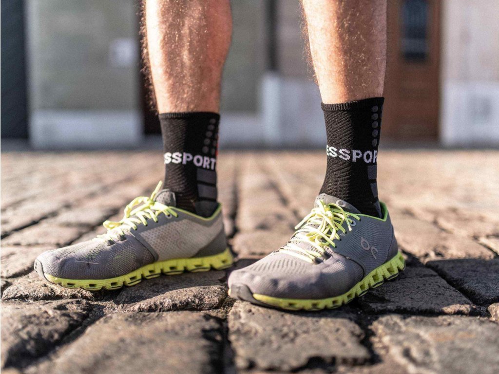 Nová řada běžeckých ponožek přináší další ventilační zóny a odlehčení. Zůstává kvality a všechny benefity speciálního tkaní ponožek COMPRESSPORT na které jste zvyklí. Stejně jako některé boty mají silnější podešev pro tlumení dopadu, tak i tyto ponožky s sebou přináší tuto vlastnost. Ponožky mají v horní části chodidla maximálně prodyšný materiál, naproti tomu ve spodní části se nacházejí extra silné „polštářky”, které eliminují otřesy zejména při delších distancích po tvrdém podkladu. Oblasti kotníku a chodila jsou tak daleko více polstrované, než je tomu u běžných ponožek značky COMPRESSPORT v podobě 3D bodů. Mimo jiné tato technologie podporuje perfektní odvod potu z oblasti chodila, přičemž také přispívá k minimalizaci tvorby puchýřů. Dalším prvkem těchto ponožek je 360° oblouková podpora, která zabraňuje sunutí ponožky během aktivity.Doplňkové parametry