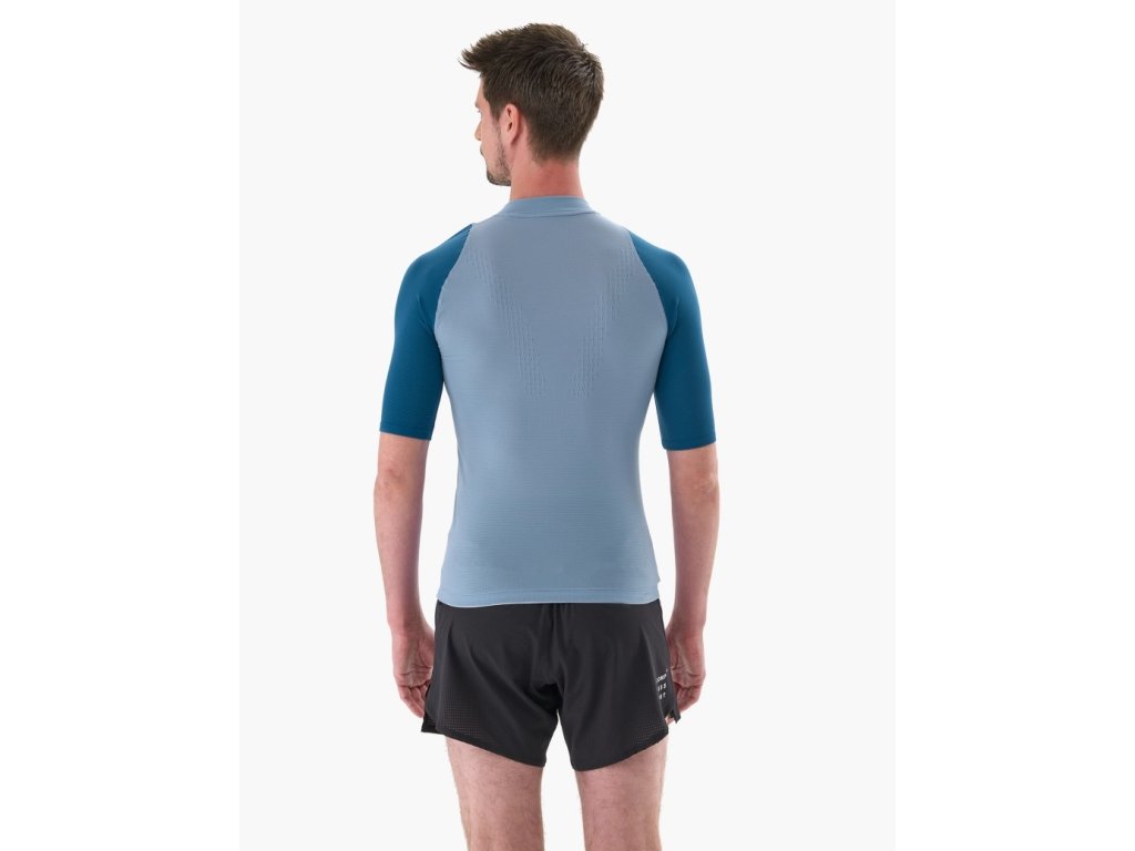 Lehký pánský dres pro trailový běh s podporou držení těla a výkonným odvětráváním pro rychlý běh na trailech. Trailový běh vyžaduje oblečení, které na sobě vůbec nevnímáte. Trail Racing Postural s krátkým rukávem nové generace vám přináší maximální pohodlí, vysocevýkonnou ventilaci pro snazší cestu na vrchol a zpět dolů. Ergonomický střih je navržen tak, aby vám dres padl jako druhá kůže. A to díky bezešvé tkanině z mikrovlákna, která zabraňuje podráždění na všech citlivých místech a zajišťuje rychlý odvod vlhkosti a potu. Technologie Spin Control vetkaná do materiálu vám pomáhá udržovat správnou polohu těla. Nový raglánový design rukávů zamezuje otlačení od běžeckého batůžku. Na bicepsech jsou rukávy přiléhavé, takže nehrozí jejich zachycení o větve, případně vaše hole. Dres disponuje zipem po celé délce, který si můžete rozepnou přesně tak, jak vám to bude pohodlné. Silikonový pásek zajišťuje, že dres zůstane na svém místě bez ohledu na terén, a dokonale se kombinuje s běžeckým pásem Free Belt pro nošení nezbytných věcí pro trailový běh. Klíčové vlastnosti: Integrovaná podpora držení těla, která vám pomůže udržet rovná ramena a zapojí celé tělo během intenzivního a dlouhodobého úsilí Optimální termoregulace a prodyšnost díky specifické tkanině z mikrovlákna a integrovaným panelům ze síťoviny, které vás udrží v chladu a suchu Vysoký komfort díky bezešvému ergonomickému střihu, který padne jako druhá kůže, a silikonovému pásku kolem pasuDoplňkové parametry