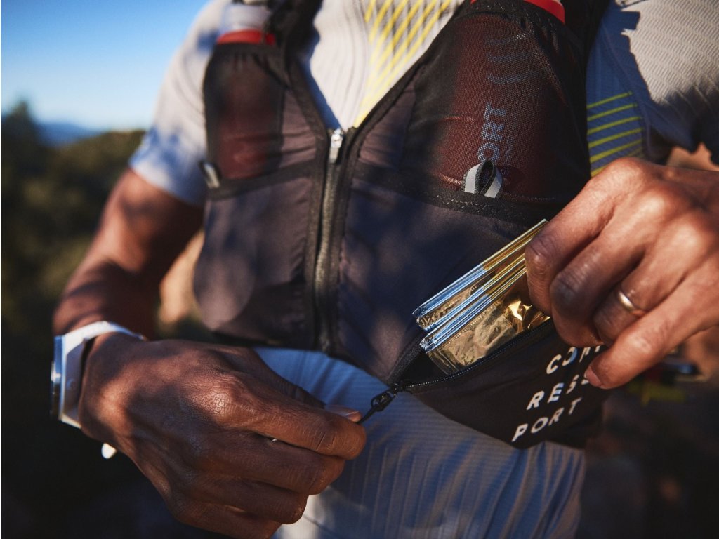 Kšilt COMPRESSPORT nový design – Různé barvy.Ideální pro běžce a triatlonisty, skvěle absorbuje pot. Objemný, 15litrový běžecký batoh s několika kapsami na zip a ergonomickým střihem pro několikahodinové běhy v horách. V ceně vesty jsou dva 500ml ergoflasky! Pokud hledáte běžeckou vestu na dlouhé výběhy nebo závody, které se blíží k 15 nebo i více hodinám, tak tato historicky 3. běžecká vesta od značky COMPRESSPORT je tou, na kterou se můžete vždy spolehnout. Se svými třemi kapsami na zip a objemem 12 + 3 litrů, vám tento ultra-stabilní běžecký batoh poskytne dostatek prostoru pro výživu a vybavení na dlouhá dobrodružství a ultramaratony. Na přední straně jsou dvě snadno přístupné síťované kapsy, které jsou určené zejména na softflasky. Nad kapsami jsou umístěna poutka pro fixaci náhubku těchto lahví. Na pravém rameni je navržena menší kapsa na zip, která je ideální pro klíče. Na levém rameni je poté síťová kapsička pro odložení obalů od výživy. Rukavice, čelenku nebo další energetické doplňky bez problémů uložíte do předních, spodních, větších kapes. Navíc, na levé straně je další kapsa na zip, která je vhodná pro uložení mobilního telefonu. Na zádech je poslední kapsa na zip, která pojme povinné nezbytnosti, které často nevytahujete. Mohou to být například doklady, peníze nebo termoizolační folie. Tato kapsa na zip překrývá největší kapsu celé vesty, která má ve své vrchní části suchý zip pro upevnění camelbaku. Ve spodní polovině je poté navržen otvor pro vyvedení hadičky. Kapsy na zádech jsou elastické, takže se do nich bez problémů vejde povinné oblečení a vybavení. Navíc, na vnější straně batohu je navržen gumový systém do písmene „Z”, kam můžete uložit bundu nebo pláštěnku. Ve spodní části zad jsou pak navrženy dvě protisměrné kapsy. Každá z nich je přístupná pouze z jedné strany. Můžete si tak věci uvnitř této dvojkapsy prakticky oddělit. Gumová oka s vnitřním silikonovým potiskem jsou zde připravena na vaše složené hole. Jak je již u značky COMPRESSPORT běžné, vesta je maximálně prodyšná a ergonomická s měkkými švy pro bezkonkurenční pohodlí. Tomu napomáhají například na přední straně i nové vycpávky, které zabraňují odíraní o hrudník. Polohovatelné boční popruhy lze velmi rychle stáhnout pro větší fixaci během technických seběhů. Zvýšení prodyšnosti ve strmých stoupáních je umožněno díky tzv. „zip-blocku”. Což znamená, že pokud necháte úchyt od zipu v poloze směrem dolu, jezdec zůstane ve stejné poloze. Běžecký batoh má v několika místech spoustu reflexních prvků. Nejenže tyto prvky zvyšují vaši bezpečnost, ale také se díky nim za tmy velmi rychle najdou jednotlivé kapsy. ULTRUN S PACK EVO 15 byl vyvinut a testován ve trailovém prostředí běžci všech výkonností. Je navržen tak, aby přinesl maximální funkčnost a bezkonkurenční komfort pro dosažení těch nejvyšších osobních cílů.Doplňkové parametry