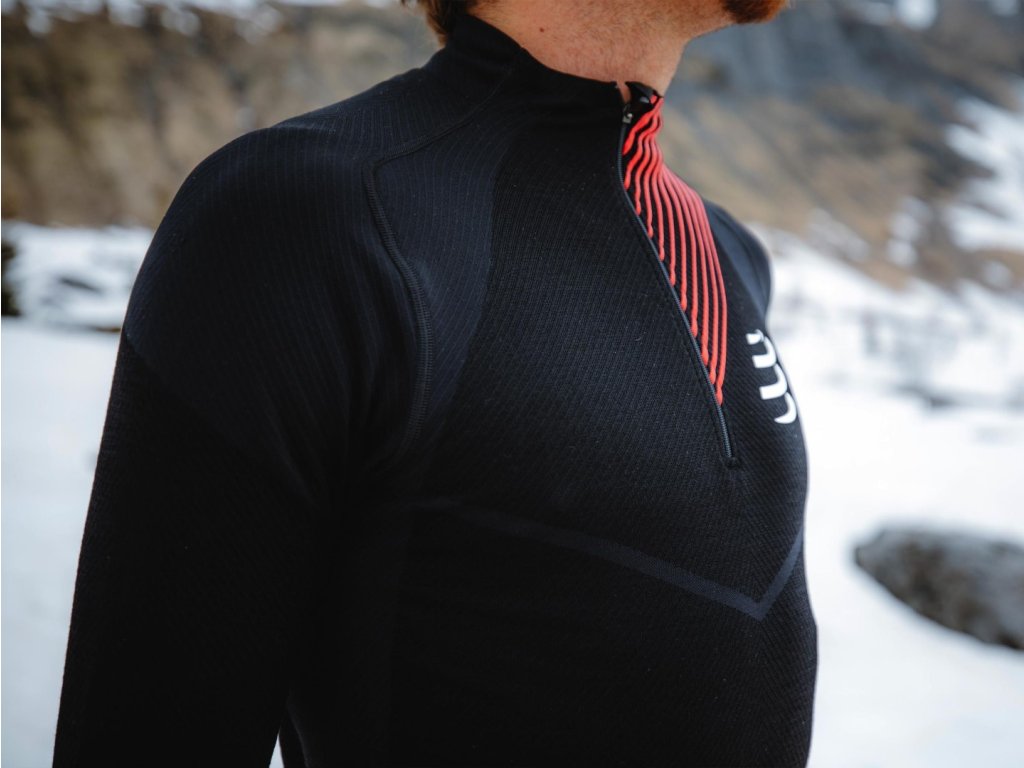 Funkční běžecký dres s dlouhými rukávy a s dokonalými termoregulačními vlastnostmi na základě vědeckého BODY MAPPINGU lidského těla. Vývojový tým značky COMPRESSPORT strávil mnoho hodin v laboratoři se zaměřením na BODY MAPPING. Výsledkem je dokonalý přehled termoregulačních vlastností lidského těla. Díky tomuto výzkumu byla vyvinuta později tato unikátní zimní běžecká kolekce. Některé části lidského těla chladnou rychleji, nejsou tolik záhřevné. V těchto místech je umístěna ze strany pokožky měkká merino vlna a na straně vnější pak polyamidová vlákna. V částech těla, kde je tomu naopak a kde je nutná zvýšená termoregulace, je toto vrstvení materiálu obrácené. Někdy vám při nižších teplotách vystačí pro optimální tepelný komfort pouze tento dres, třeba jen ve spojení s běžeckou bundou. Dres můžete ale použít případně i jako druhou vrstvu v kombinaci s funkčním spodním prádlem (například 3D Thermo 50g/110 g Tshirt). Je vyroben z merino vlny a polyamidu a udrží vás v optimální provozní teplotě během tréninku nebo závodu a to i v těch nejchladnějších měsících. Ventilační panely a rozepínací zip se postarají o rychlý odvod vlhkosti. Vyvýšený límec a oka pro palce na koncích rukávů vám pomůžou k udržení optimálního tepelného komfortu i při nižších teplotách. Materiálové složení: 69% polyamid, 31% vlnaDoplňkové parametry