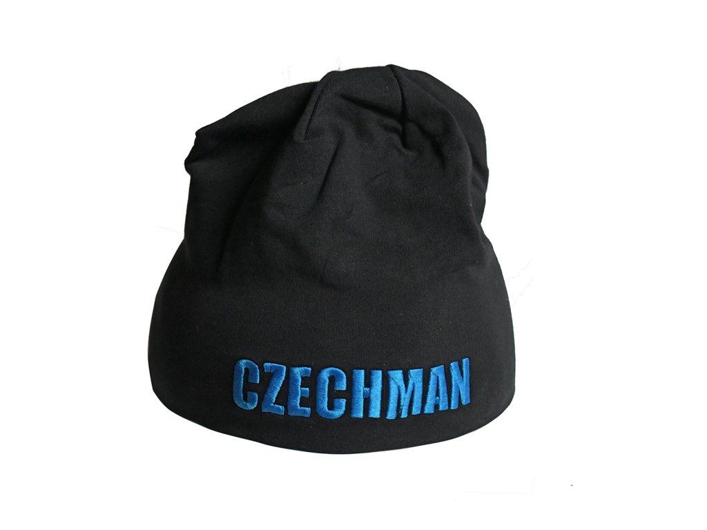 Černou čepici nabízíme ve 2 barevných variantách výšivky: modrá a bílá