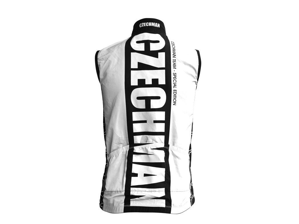Lehká cyklistická vesta s třemi kapsami na zádech a reflexním pruhem pro lepší viditelnost. Materiál: 100% Polyester