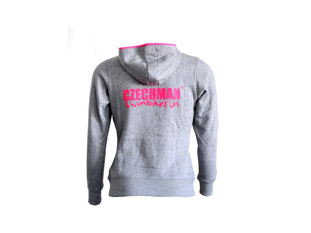 CZECHMAN Dámská mikina CZECHMAN s kapucí - Šedivo-růžová