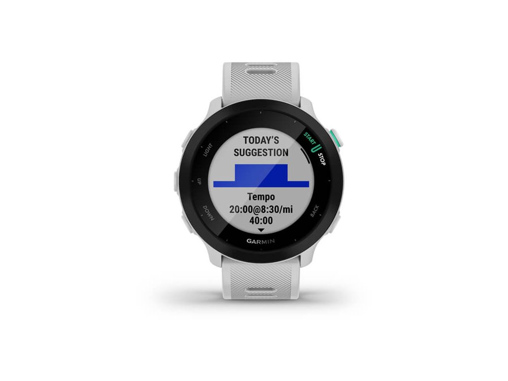 Hodinky Garmin Forerunner 55 jsou snadno ovladatelné, sportovně všestranné GPS hodinky se speciálními funkcemi zaměřenými na běžce. Hodinky Garmin Forerunner 55 jsou snadno ovladatelné, sportovně všestranné GPS hodinky s funkcemi zaměřenými na běžce. Vysoce citlivý přijímač satelitního systému GPS, GLONASS, GALILEO Vestavěný optický snímač srdečního tepu ze zápěstí Bluetooth propojení s mobilním telefonem, funkce chytrých hodinek Smart notifikace, ovládání hudby, LiveTracking Určení výkonnosti pomocí detekce VO2Max Celodenní záznam aktivity (kroky, kalorie, intenzivní minuty) Celodenní monitoring srdečního tepu, monitoring spánku Vibrační upozornění a alarmy Samostatné profily aktivit (běh, běh uvnitř, kolo, chůze, kardio, jóga, plavání v bazénu, HIIT, dýchání, pilates a další) Možnost spárování s externími snímači pomocí ANT+ Výdrž baterie až 20 hod. GPS záznamu, až 14 dní v režimu chytrých hodinek Voděodolné provedení (5 ATM) - odolá souvislému plavání Velmi nízká hmotnost, jen 37g Virtuální běžecký trenér, možnost přípravy individuálních tréninků. Podpora pro stahování Connect IQ vzhledů hodinek (ciferníků) Bezpečnostní funkce (přivolání asistence a automatická detekce nehody) POHODLNÉ A FUNKČNÍ Forerunner 55 mají nízkou hmotnost a jsou navrženy s ohledem na maximální pohodlí. Sedí tak pohodlně, že o hodinkách na zápěstí nebudete vědět. A to jak během tréninku, tak i mimo něj. MATERIÁLY VHODNÉ PRO SPORT Řemínek i pouzdro hodinek jsou vyrobené z lehkých, odolných materiálů, které se hodí na sport a do náročných podmínek. Perforovaný řemínek ze silikonu odvádí při sportu velmi dobře pot a poskytuje vysoké pohodlí. VIRTUÁLNÍ BĚŽECKÝ TRENÉR Funkce virtuálního běžeckého trenéra umí připravit individuální tréninkové plány, nabízejí bezplatné tréninky a pokyny od profesionálních trenérů. Tréninky se navíc přizpůsobí vašim potřebám a cílům. DOPORUČENÉ DENNÍ TRÉNINKY Chcete-li získat osobní tréninkové pokyny, využijte denní doporučení pro běh různých intenzit na základě vaší tréninkové historie, úrovně kondice a doby regenerace. TECHNOLOGIE PACEPRO™ Tato funkce vám pomůže naplánovat strategii pro příští závod a navrhne tempo na základě GPS pro vybranou trasu nebo vzdálenost v aplikaci Garmin Connect™. Své úsilí tak můžete přizpůsobit tomu, co vás čeká. PŘEDPOVĚĎ VÝSLEDKŮ Tato speciální nástroj zohledňuje vaši aktuální sportovní úroveň a tréninkovou historii. Pomůže vám pracovat na dosažení stanoveného cíle pro závod a sledovat vliv tréninku na předpokládaný čas dokončení závodu. FUNKCE BODY BATTERY™ Sledujte úroveň energie svého těla, abyste si vhodně naplánovali aktivity i odpočinek. SLEDOVÁNÍ MÍRY STRESU Zjistěte, jestli se váš den nese v duchu klidu, vyrovnanosti nebo stresu. Připomenutí odpočinku vás vybídne ke krátkému dechovéhu cvičení. CHYTRÁ OZNÁMENÍ Po spárování s kompatibilním chytrým telefonem můžete na chytré hodinky přijímat e-maily, textové zprávy a upozornění. OVLÁDÁNÍ HUDBY Snadno ovládejte hudbu přehrávanou v telefonu a přeskakujte skladby, aniž byste vypadli z tempa.Buďte první, kdo napíše příspěvek k této položce.