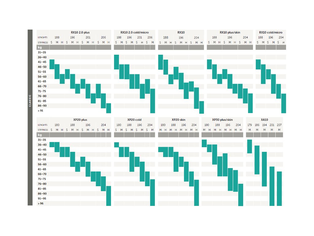 Klasické běžky Kästle RX10 2.0 Classic jsou v oblasti závodních lyží novým milníkem. Tato nová varianta klasické konstrukce je nejvýkonnější, jakou značka Kästle kdy měla. Díky přídavným karbonovým výztužím po celé délce lyží a v oblasti vázání zůstává zachováno tradičně koncipované klenutí. Torzní skříň z topolu a jasanu chrání lehké voštinové jádro a zajišťuje maximální stabilitu. Navíc tento model Kästle pro světový pohár zaručuje díky technologii HOLLOWTECH a markantnímu reboundu nejvyšší energetickou efektivitu běhu. Klasické běžky Kästle RX10 2.0 Classic jsou v oblasti závodních lyží novým milníkem. Tato nová varianta klasické konstrukce je nejvýkonnější, jakou značka Kästle kdy měla. Díky přídavným karbonovým výztužím po celé délce lyží a v oblasti vázání zůstává zachováno tradičně koncipované klenutí. Torzní skříň z topolu a jasanu chrání lehké voštinové jádro a zajišťuje maximální stabilitu. Navíc tento model Kästle pro světový pohár zaručuje díky technologii HOLLOWTECH a markantnímu reboundu nejvyšší energetickou efektivitu běhu. Naše nejrychlejší klasické lyže přesvědčí každého profesionálního závodníka i znalce, kterému záleží na rychlosti, svou dokonalou rovnováhou stoupacích a kluzných zón i ručně broušenými hranami pro nejvyšší výkony. (R)Evoluce vyvinutá perfekcionisty. model pro závodníky Světového poháru nejlehčí lyže Kästle s maximální stabilitou dokonalá rovnováha kluzných a stoupacích zón ruční broušení pro maximální výkon součástí je NIS deska 3.0 Varianty: Plus (+10° C to -10° C), skluznice WC Race Plus, Struktura UW1 Cold (-5° C to -30° C), skluznice WC Race Cold, Struktura CW1 Mikro, skluznice WC Race Plus, Struktura UW1 Délka - tvrdost - hmotnost: 188 cm - soft/medium/hard - 480 g 196 cm - soft/medium/hard - 515 g 201 cm - soft/medium/hard - 530 g 206 cm - soft/medium/hard - 545 g Doporučené vázání: Rottefella vázání NIS-Xcelerator Pro Classic, NIS-Xcelerator 2.0 Classic. Na NIS desku 3.0 můžete navíc použít nasouvací vázání Move Race nebo Move Switch. TECHNOLOGIE A. CAPOVÁ KONSTRUKCE B. HONEYCOMB C. FIBERGLASS D. UD CARBON FIBERGLASS E. UD CARBON TORZNÍ SKŘÍŇ: PAPVLOVNIE / JASAN HOLLOWTECH Ve světové špičce je zapotřebí především jedno: špičkové vybavení. Na počátku tohoto tisíciletí jsme díky technologii HOLLOWTECH nastolili revoluci v alpském lyžování! V oblasti severských sportů jsme podobně důslední. Odstraněním nepotřebných vrstev ve špičce lyže jsou špičky a lyže celkově lehčí. To jim dodává výrazně lepší rovnováhu a redukuje rotaci při pohybu lyže vpřed, což pomáhá sportovcům šetřit síly a rychleji dosáhnout cíle. CAPOVÁ KONSTRUKCE Všechny modely běžeckých lyží mají CAP konstrukci s karbonovým vyztužením. Její povrchová fólie obaluje boky lyže a perfektně tak chrání jádro. Všechny Kästle lyže na klasické lyžování jsou ideálně přizpůsobeny své oblasti použití. JÁDRO Nikde není těžší přežít než v přírodě – tomu odpovídá i důmyslnost uplatňovaných řešení. Včely tak se svými šestiúhelníkovými plástvemi vyvinuly ideálně stabilní konstrukci, která umožňuje maximální pevnost za použití minimálního množství materiálu. Z tohoto důvodu je jádro lyží Kästle vyráběno podle zásady včelích pláství z přírodních vláken, což redukuje hmotnost na minimum a zajišťuje stabilitu. Jádro si zároveň zachovává elasticitu a poskytuje výbušný odrazový efekt pod chodidlem! UL WOOD Struktura včelích pláství je zabudována do torzního boxu z ultralehkého dřeva paulovnie, kterému říkáme UL WOOD. To zaručuje optimální torzní tuhost a flexi při minimální hmotnosti. VARIANTY Profesionální běh na lyžích je extrémní sport – pro sportovce i pro materiál! A s různými teplotami a sněhovými podmínkami se přidávají proměnné, které nelze ovlivnit. Pro optimální výkon při nejrozmanitějších podmínkách jsme vyvinuli čtyři varianty plochy lyže. PLUS Kombinace skluznice a broušení, která poskytuje nejlepší kluzné vlastnosti při teplotě vzduchu od +10° C do -10° C. COLD Vytvořena pro extrémní podmínky – tato varianta se používá při teplotě vzduchu od -5° C do –30° C. MIKRO Ideální kombinace skluznice a broušených hran pro složité povětrnostní podmínky kolem 0 °C, například při sněžení. Tyto nově vyvinuté bezvoskové lyže mají speciální vrstvu v oblasti vázání, zdrsněnou podle individuálních požadavků zákazníka. SKLUZNICE Typ skluznic je optimálně přizpůsoben oblasti použití a podmínkám. WC RACE PLUS Vysoce výkonná skluznice používaná při Světovém poháru s vynikající absorpcí vosku a maximálními kluznými vlastnostmi. Použitelná v rozmanitých sněhových podmínkách. WC RACE COLD Vysoce výkonná skluznice používaná při Světovém poháru s excelentní absorpcí vosku a maximálními kluznými vlastnostmi. SDoplňkové parametry