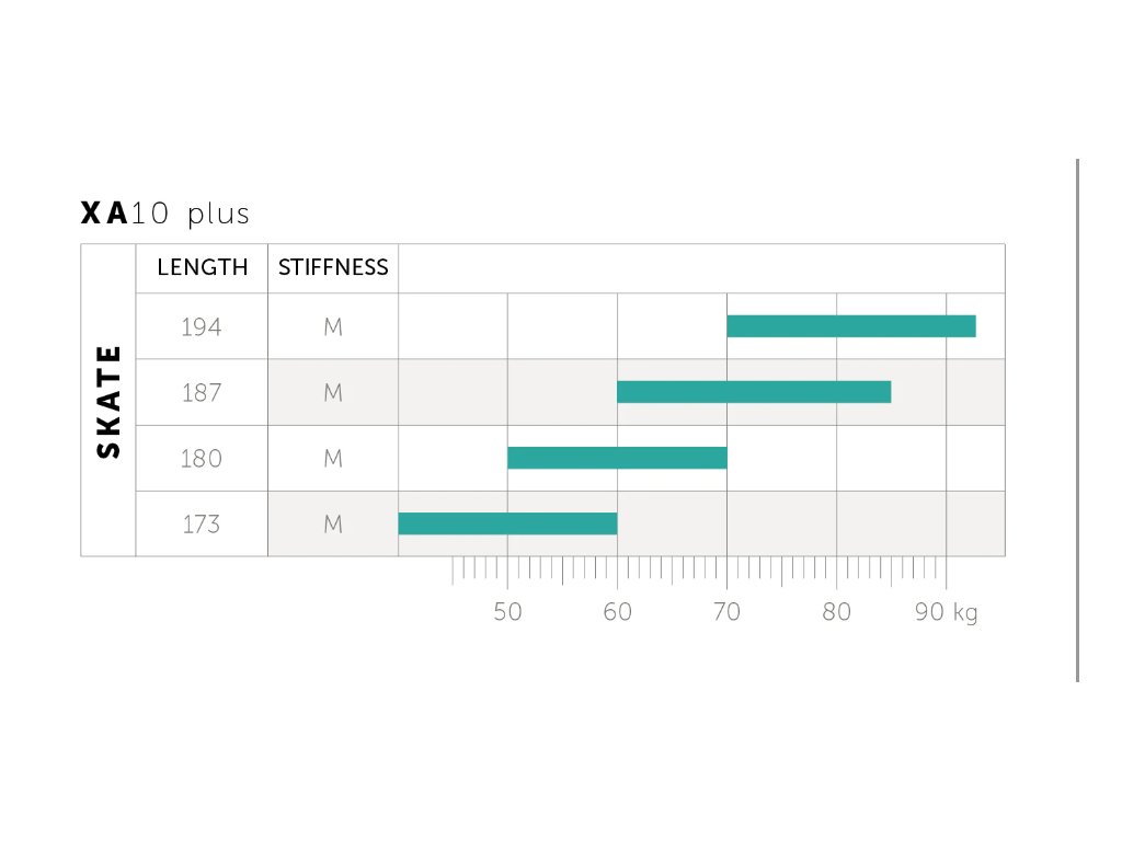 Kästle XA10 Skate jsou běžky určené pro začátečníky. Jsou široké a nabízejí tak větší pohodlí při jízdě. Lehká dřevěná konstrukce spolu s technologií Hollowtech 2.0 zajišťuje nízkou hmotnost a vytváří optimálně vyvážené lyže. Díky skluznicím nenáročným na údržbu je tento model robustní a perfektní pro všechny, kteří s během na lyžích začínají nebo běžkují pouze příležitostně. Kästle XA10 Skate jsou běžky určené pro začátečníky. Jsou široké a nabízejí tak větší pohodlí při jízdě. Lehká dřevěná konstrukce spolu s technologií Hollowtech 2.0 zajišťuje nízkou hmotnost a vytváří optimálně vyvážené lyže. Díky skluznicím nenáročným na údržbu je tento model robustní a perfektní pro všechny, kteří s během na lyžích začínají nebo běžkují pouze příležitostně. Tolerantní lyže XA10 jsou široké a skýtají tak větší pohodlí při jízdě. Lehká dřevěná konstrukce spolu s technologií Hollowtech 2.0 zajišťuje nízkou hmotnost a vytváří optimálně vyvážené lyže. Díky skluznicím nenáročným na údržbu je tento model robustní a perfektní pro všechny, kteří s během na lyžích začínají nebo běžkují pouze příležitostně. Specifikace: Délky: 173, 180, 187, 194 cm Profil: 42-45-44 mm Tvrdost: medium Skluznice: Easy Plus Varianta: Plus (+10 °C to -30 °C) Technologie: HOLLOWTECH: Odstraněním nepotřebných vrstev ve špičce lyže jsou špičky a lyže celkově lehčí. To jim dodává výrazně lepší rovnováhu a redukuje rotaci při pohybu lyže vpřed, což pomáhá sportovcům šetřit síly a rychleji dosáhnout cíle. CAP KONSTRUKCE: Její povrchová fólie obaluje boky lyže a perfektně tak chrání jádro. Vyztužená karbonem. JÁDRO: U robustnějších modelů se pro vnitřek dřevěného jádra používá evropský topol – i zde dochází k opláštění dřevem UL WOOD. To zaručuje optimální torzní tuhost a flexi při minimální hmotnosti.Doplňkové parametry