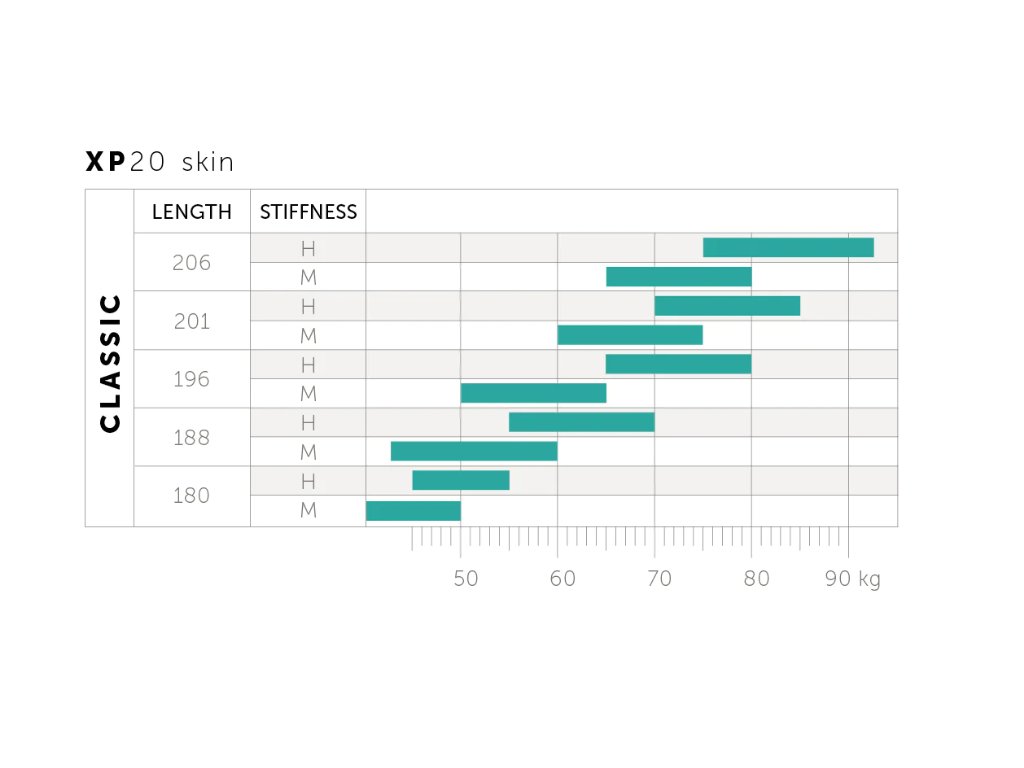 Běžky KÄSTLE XP20 Classic vynikají voštinovým jádrem a vynikajícími vlastnostmi ve skluzu i stoupání. Technologie HOLLOWTECH umožňuje perfektní odraz a navíc zaručuje energeticky úsporný běh. Běžky KÄSTLE XP20 Classic vynikají voštinovým jádrem a vynikajícími vlastnostmi ve skluzu i stoupání. Technologie HOLLOWTECH umožňuje perfektní odraz a navíc zaručuje energeticky úsporný běh. Běžky KÄSTLE XP20 Classic vynikají voštinovým jádrem a vynikajícími vlastnostmi ve skluzu i stoupání. Technologie HOLLOWTECH umožňuje perfektní odraz a navíc zaručuje energeticky úsporný běh. Klasické sportovní lyže, které znalci cení pro jejich mnohostrannost, jak při tréninku tak na závodech. Nový barevný design race mint nahrazuje předchozí model KÄSTLE XP20 CLASSIC SKIN. Stoupací mohérové pásy umožňují optimální stoupání zcela bez použití vosku. Délka - tvrdost - hmotnost 180 cm - medium/hard - 516 g 188 cm - medium/hard - 538 g 196 cm - medium/hard - 560 g 204 cm - medium/hard - 583 g Vykrojení 41-44-44 Skluznice WC Race Plus Struktura UM1 Doporučené vázání Součástí běžek je NIS deska 3.0 Rottefella vázání NIS-XCELERATOR 2.0 CLASSIC Na NIS desku 3.0 můžete navíc použít nasouvací vázání Move Race nebo Move Switch.Doplňkové parametry