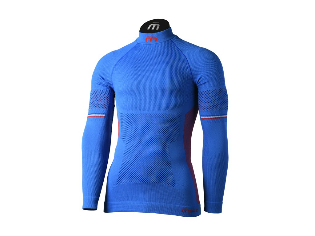 Bezešvé zimní dlouhé termo prádlo Mico LONG SLEEVES MOCK NECK SHIRT M1, vrchol technické inovace a výzkumu výkonnosti. Vysoká prodyšnost a termoregulace tvořená dvou komponentní technologií, která kombinuje hydrofobní tkaninu Drayrn uvnitř a hydrofilní hi-tech polyamid z vnější strany pro maximální odvod vlhkosti. Konstrukční strukturu mapující celé tělo tvoří ergonomické ochranné zóny na ramenou, podpora posturálních svalů lopatek, účinné vypařování podél zad a v podpaží, elastická podpora s vysokou hustotou po stranách a na hrudi a mírná komprese na konci rukávů.Doplňkové parametry