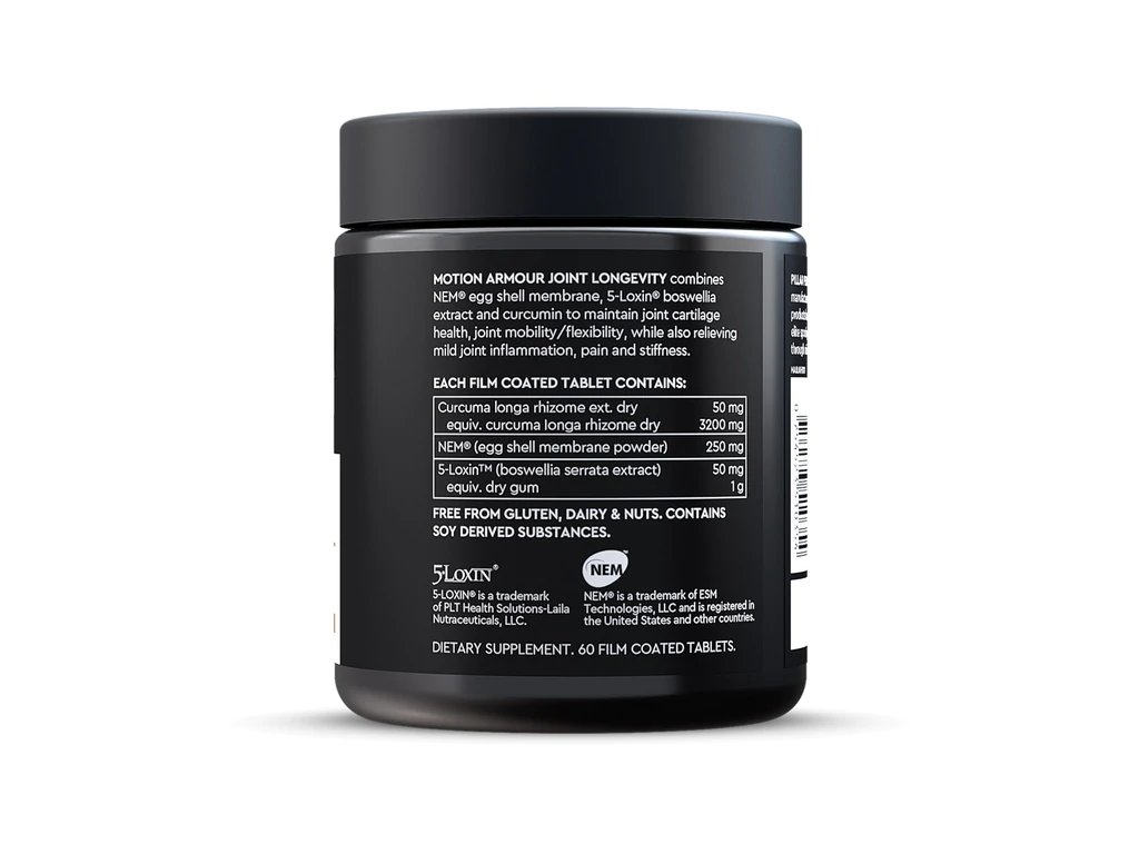MOTION ARMOR je první na trhu uvedená kombinace přírodních patentovaných složek NEM®, 5-LOXIN® spolu s kurkuminem cíleně vyvinutá pro udržení zdraví kloubních chrupavek, podporu pohyblivosti/pružnosti kloubů a zároveň zmírnění zánětů kloubů, bolesti a ztuhlosti. NEM® je patentovaná složka membrány z vaječných skořápek od Stratum Nutrition. NEM® je celosvětově nejvíce klinicky testovaný produkt membrány z vaječných skořápek s klinickými studiemi, prokazující pozitivní výsledky na podporu kloubů proti bolesti, ztuhlosti a neohebnosti. 5-LOXIN® je patentovaný, klinicky studovaný extrakt z boswellie s klinickými zkouškami prokazujícími pozitivní přínos speciálně pro rozpad chrupavky. Klíčové vlastnosti: Formulováno s použitím patentovaných přírodních složek NEM® (membrána z vaječných skořápek) a 5-LOXIN® (extrakt z Boswellia serrata). Udržuje zdravou kloubní chrupavku. Zmírňuje mírné záněty kloubů. Zmírňuje mírnou bolest a ztuhlost kloubů. Udržuje pohyblivost/flexibilitu kloubů. 60 potahovaných tablet. Složení / 1 kapsle obsahuje: NEM® (Prášek z vaječné skořápky) 250 mg 5-Loxin™ (výtažek Boswellia serrata) 50 mg ekv. Boswellia suchá guma 1g Curcuma longa oddenek 50 mg ekv. Curcuma Longa suchý oddenek 3200 mg Doporučené dávkování: Dospělí - užívejte dvě (2) tablety denně nebo podle pokynů lékaře. Pro dosažení nejúčinnějších výsledků, na základě všech současných klinických studií týkajících se NEM® a 5-Loxin®, by měla být užívána přísná dávka 2 tablety denně. Pokud příznaky přetrvávají, poraďte se se zdravotníkem. Vitamínové doplňky by neměly nahrazovat pestrou a vyváženou stravu. Nepoužívejte, pokud je těsnění obalu porušené. Skladujte při teplotě do 30˚C. Výživové informace: Bez lepku, mléčných výrobků a ořechů. Obsahuje látky odvozené ze sóji. Certifikát otestování: Chcete-li získat příslušný certifikát šarže pro tento produkt, přejděte do naší knihovny certifikátů šarží a vyhledejte číslo šarže svého produktu, abyste našli odpovídající certifikát. Máte-li jakékoli dotazy týkající se dávkově testovaných produktů, zašlete e-mail na adresu testing@pillarperformance.com.auDoplňkové parametry