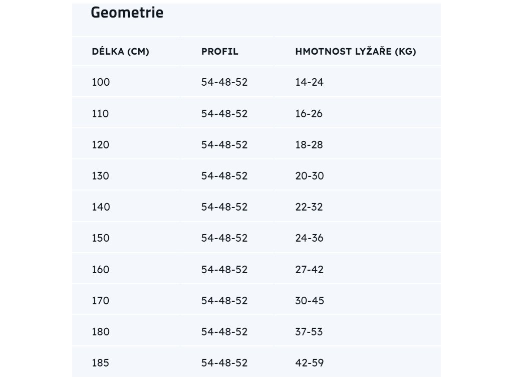Snadno ovladatelné kvalitní lyže pro juniory, které hravě zvládnou sportovní tempo. Lyže jsou vyrobeny s broušenou korunkou. Snadno ovladatelné kvalitní běžky, které s lehkostí zvládnou sportovní tempo. Lyže se vyrábí ve verzi řezaným protismykem. Váhová doporučení k délce běžek: DÉLKA (CM) PROFIL HMOTNOST LYŽAŘE (KG) 100 54-48-52 14-24 110 54-48-52 16-26 120 54-48-52 18-28 130 54-48-52 20-30 140 54-48-52 22-32 150 54-48-52 24-36 160 54-48-52 27-42 170 54-48-52 35-50 VELIKOSTNÍ/VÁHOVÁ TABULKADoplňkové parametry
