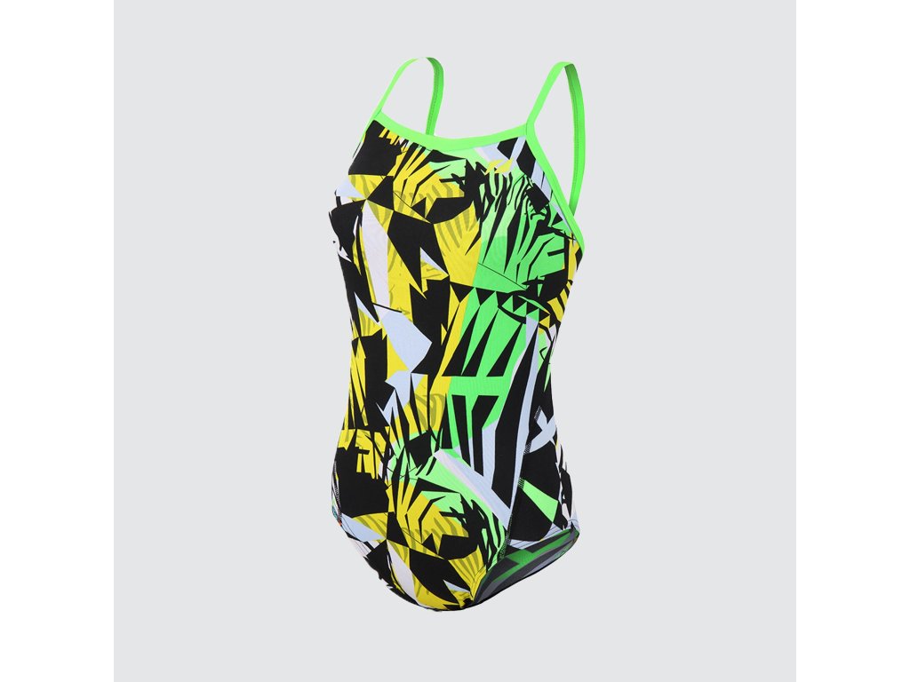 VÝPRODEJ SKLADOVÝCH ZÁSOB Dámské plavky Zone3 High-Jazz 2.0 Strap Back Costume - BLACK/YELLOW/GREEN/WHITE