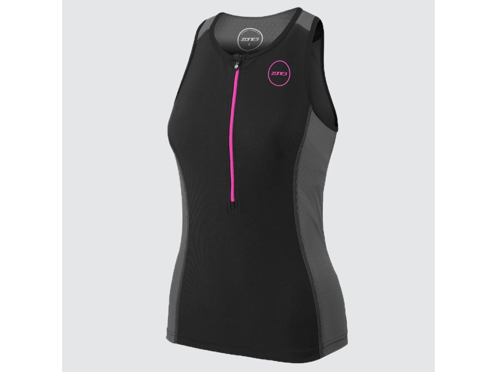 VÝPRODEJ SKLADOVÝCH ZÁSOB Dámský triatlonový top Zone3 Women's Aquaflo Plus Top - BLACK/GREY/NEON PINK
