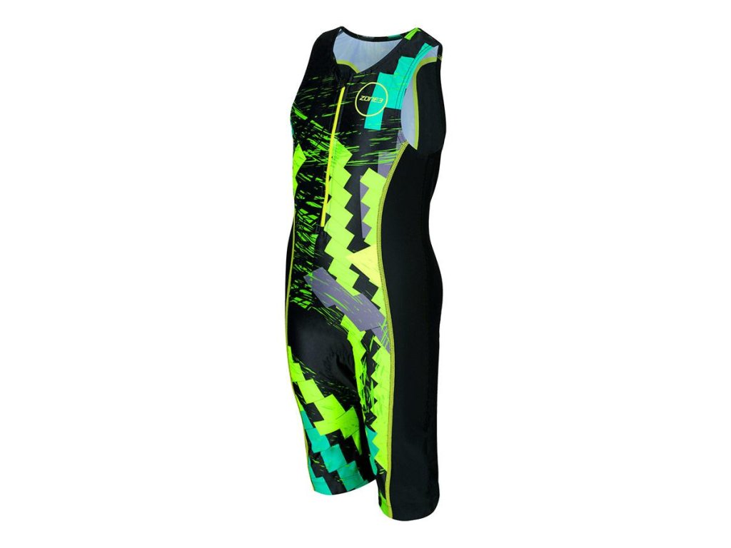 VÝPRODEJ SKLADOVÝCH ZÁSOB Dětská triatlonová kombinéza Zone3 Adventure Trisuit - DIGITAL PRINT - BLACK/GREEN/YELLOW