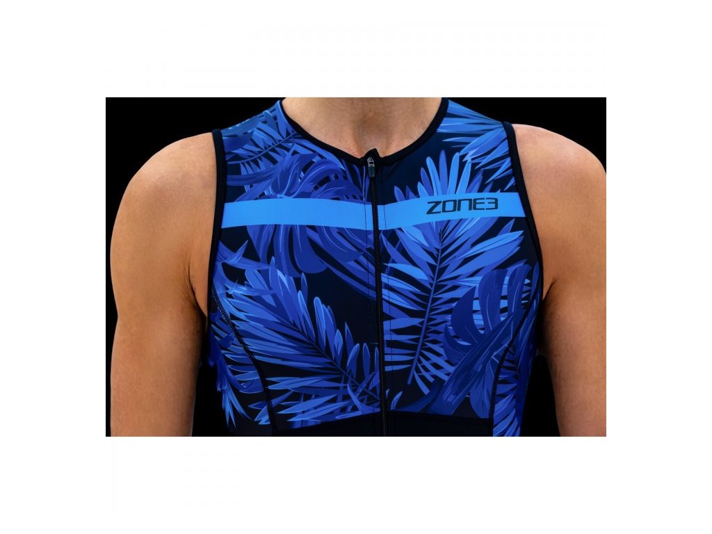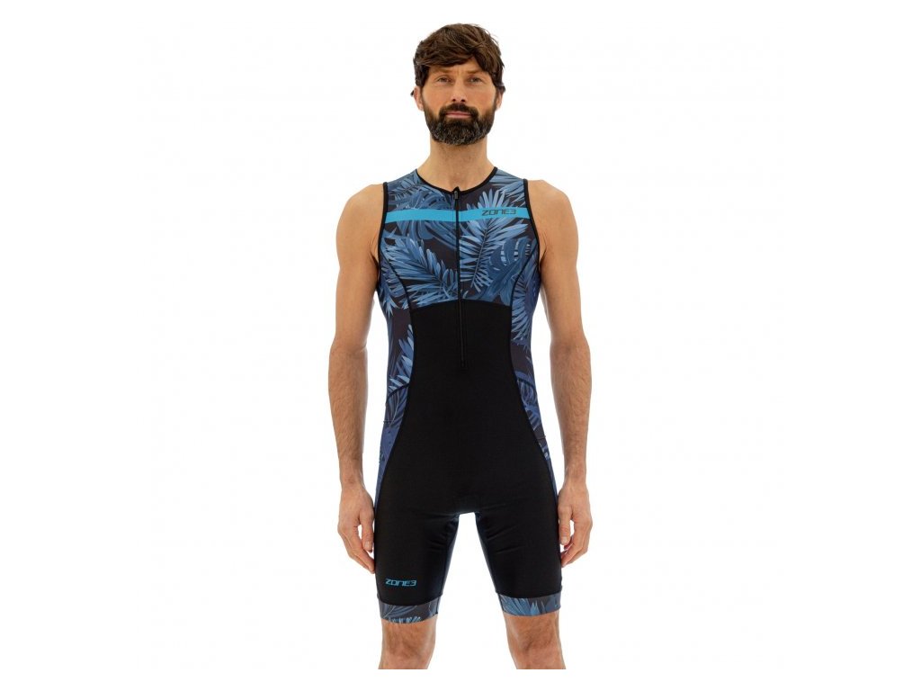 VÝPRODEJ SKLADOVÝCH ZÁSOB Pánská triatlonová kombinéza Zone3 ACTIVATE+ TROPICAL PALM SLEEVELESS TRISUIT - Navy/Blue