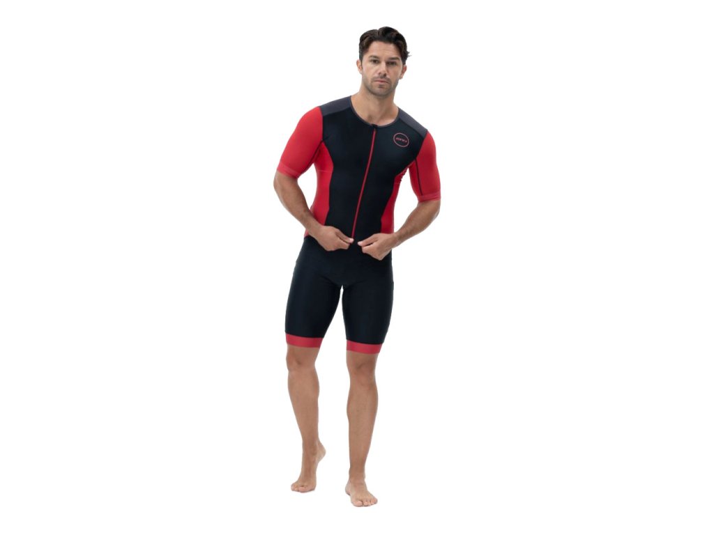 VÝPRODEJ SKLADOVÝCH ZÁSOB Pánská triatlonová kombinéza Zone3 Aquaflo Plus Short Sleeve Full Zip - Black/Red