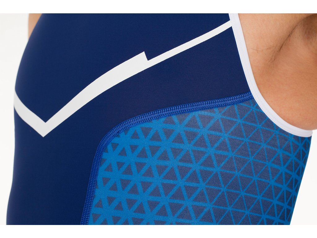 Dres řady Trisuit Racer byl navržen pro triatlonisty závodící na krátkých vzdálenostech. Díky nové Revo Comp technologii a extra plochým švům je tento triatlonový dres neuvěřitelně rychlý ve vodě i mimo ni, navíc poskytuje mimořádnou svalovou podporu a snižuje bolestivost svalů. Je rychleschnoucí a zůstáne na správném místě po celou dobu závodu. Obrácený zip na zádech poskytuje ventilaci v průběhu závodu, tripad speciálně navržený pro krátké vzdálenosti Vám zase pomůže zůstat v pohodlí na kole i při běhu. Technické parametry: silikonový grip na nohách zajišťuje perfektní polohu dresu a pohodlí; tkanina pro ochranu kůže před sluncem: UPF50+; rychleschnoucí tripad navržený pro závody na krátké vzdálenosti. Složení: 80 % polyamide, 20 % elastan. Vyrobeno v Portugalsku.Doplňkové parametry