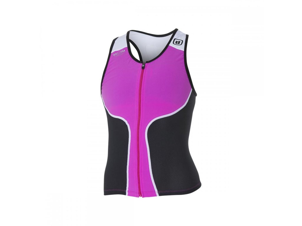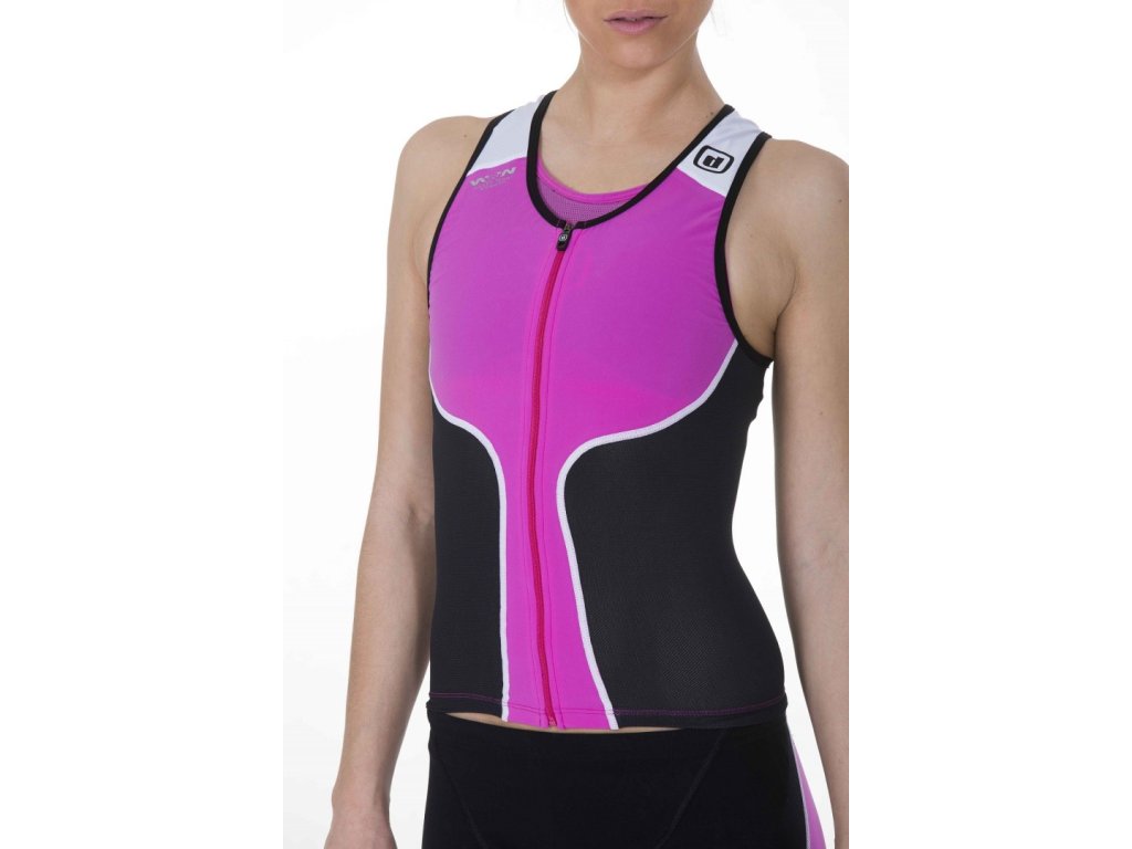 Dámský triatlonový top Dámská kolekce triatlonových dresů bez rukávu s názvem iTOP má celozapínací zip umožňující navléknout dres během okamžiku, má dvě kapsy na zadní straně pro energetické doplňky. Tento dres byl rovněž vyroben z tkaniny Water Wear Weapon, na zadní straně je opět vybaven vzdušnou síťovinou. Složení: 80% Polyester / 20% ElastaneFrancouzský materiál, ušito ve Španělsku TABULKA VELIKOSTÍDoplňkové parametry