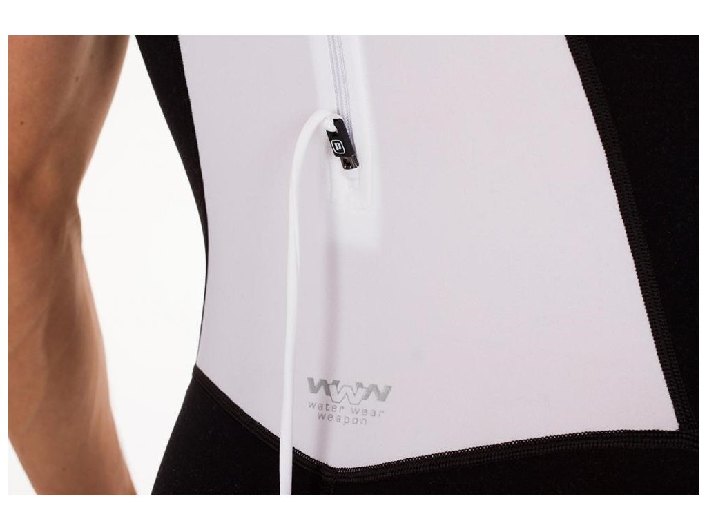 Pánská triatlonová kombinéza Řada Elite oslovuje špičkové sportovce na krátké i dlouhé závody pomocí vysokorychlostních oděvů určených pro výkon. Látka je vysoce prodyšná, lehká a odpuzuje vodu. Švy kolem krku a ramen poskytují velký komfort a zároveň přispívají k aerodynamice. Otevřená záda umožňují sportovcům volný pohyb. Silikonové lemy na nohou zajišťují, že nohavice zůstanou po celou dobu závodu na svém místě.Doplňkové parametry