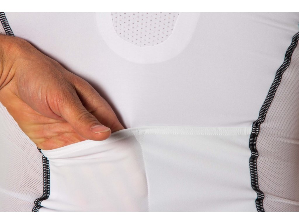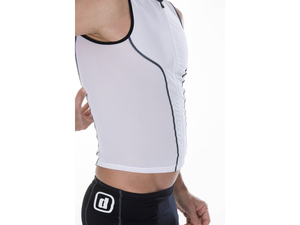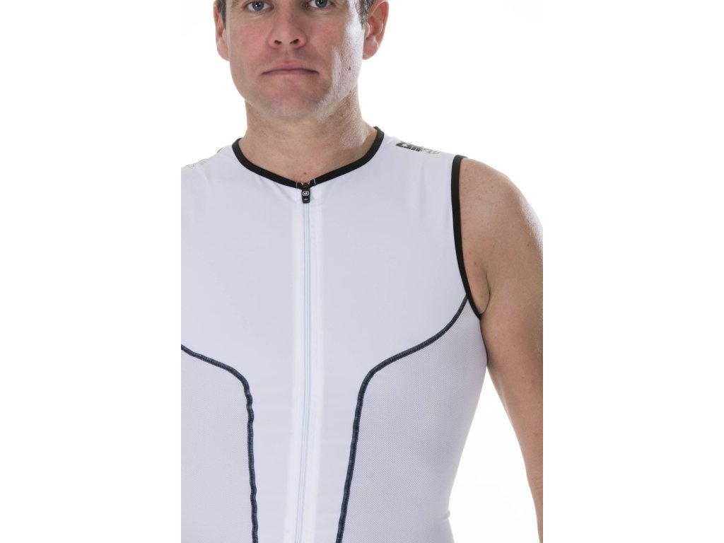 Pánský triatlonový dres Řada triatlonových dresů bez rukávu iSinglet byla vytvořena pro triatlety závodící na dlouhých tratích. Zakrývá horní část těla směrem k pasu včetně části ramen a má dvě zadní kapsy pro energetické doplňky. Zip v přední části je celorozepínací, díky tomu obléknutí trvá jen pár vteřin v prvním depu. Vysoká UV ochrana 50+ v kombinaci s ultralehkou tkaninou Water Wear Weapon a síťovanou boční a zadní částí jsou ideální pro teplé počasí. Složení: 80% Polyester / 20% ElastaneFrancouzský materiál, ušito ve Španělsku TABULKA VELIKOSTÍDoplňkové parametry