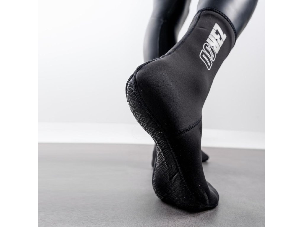 Neoprenové ponožky S Vašim neoprenem se neoprenové botičky mohou ukázat jako nezbytný prvek triatlonisty, i když je teplota vody pod 15 stupňů ... Budou izolovat vaše nohy od chladu při Vašem tréninku ve vodě a během soutěží. Délka kotníkového kolíku umožňuje zakrýt spodní nohy k základně obleku. Podešev má protiskluzový silikonový potisk pro bezpečné vstupy do vody a výstupy z ní. Vlastnosti: - Neopren Flex 385: 2 mmDoplňkové parametry