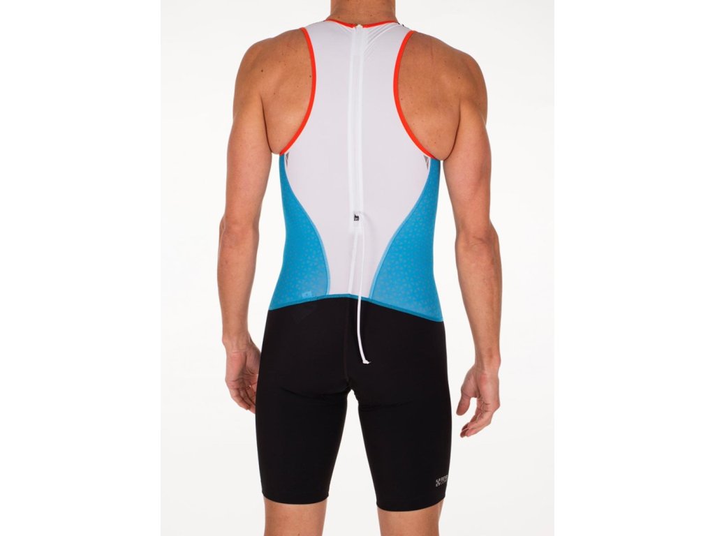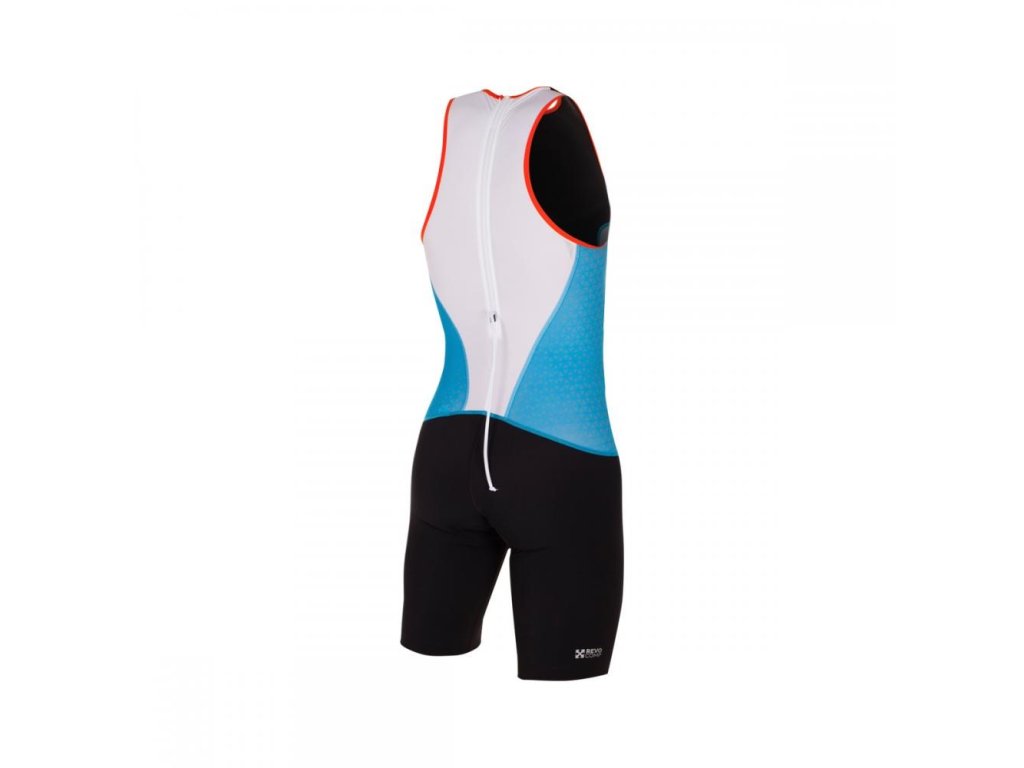 Pánská triatlonová kombinéza Dres Trisuit řady Racer byl navržen pro triatlonisty závodící na krátkých vzdálenostech. Díky nové Revo Comp technologii a extra plochým švům je tento triatlonový dres neuvěřitelně rychlý ve vodě i mimo ni, mimo to poskytuje mimořádnou svalovou podporu a snižuje bolestivost svalů. Je rychleschnoucí a zůstává na správném místě po celou dobu závodu. Obrácený zip na zádech poskytuje ventilaci v průběhu závodu, tripad speciálně navržený pro krátké vzdálenosti Vám zase pomůže zůstat v pohodlí na kole i při běhu. Technické parametry: silikonový grip na nohách zajišťuje perfektní polohu dresu a pohodlí; tkanina pro ochranu kůže před sluncem: UPF50+; rychleschnoucí tripad navržený pro závody na krátké vzdálenosti. Produkt nabízíme ve dvou barevných variacích. Složení: 80 % polyamide, 20 % elastan. Vyrobeno v Portugalsku. TABULKA VELIKOSTÍDoplňkové parametry