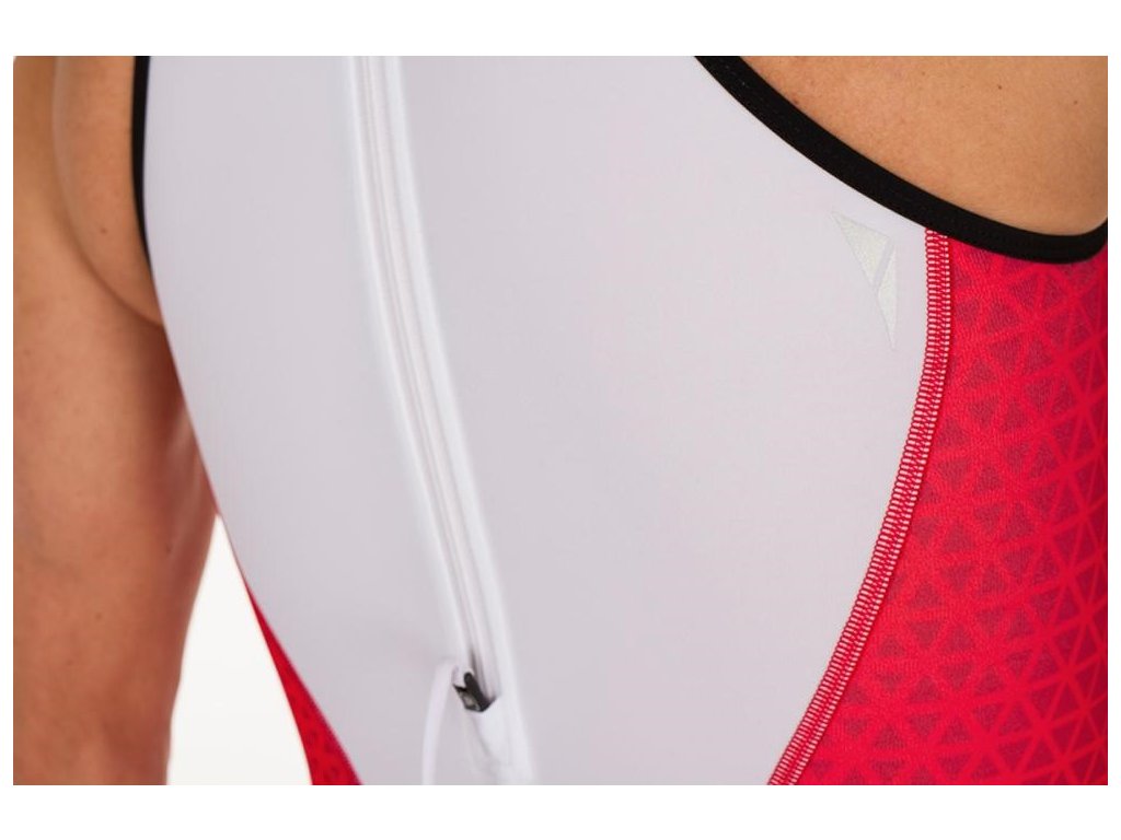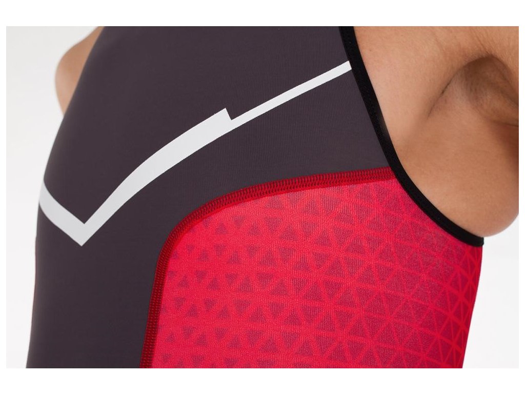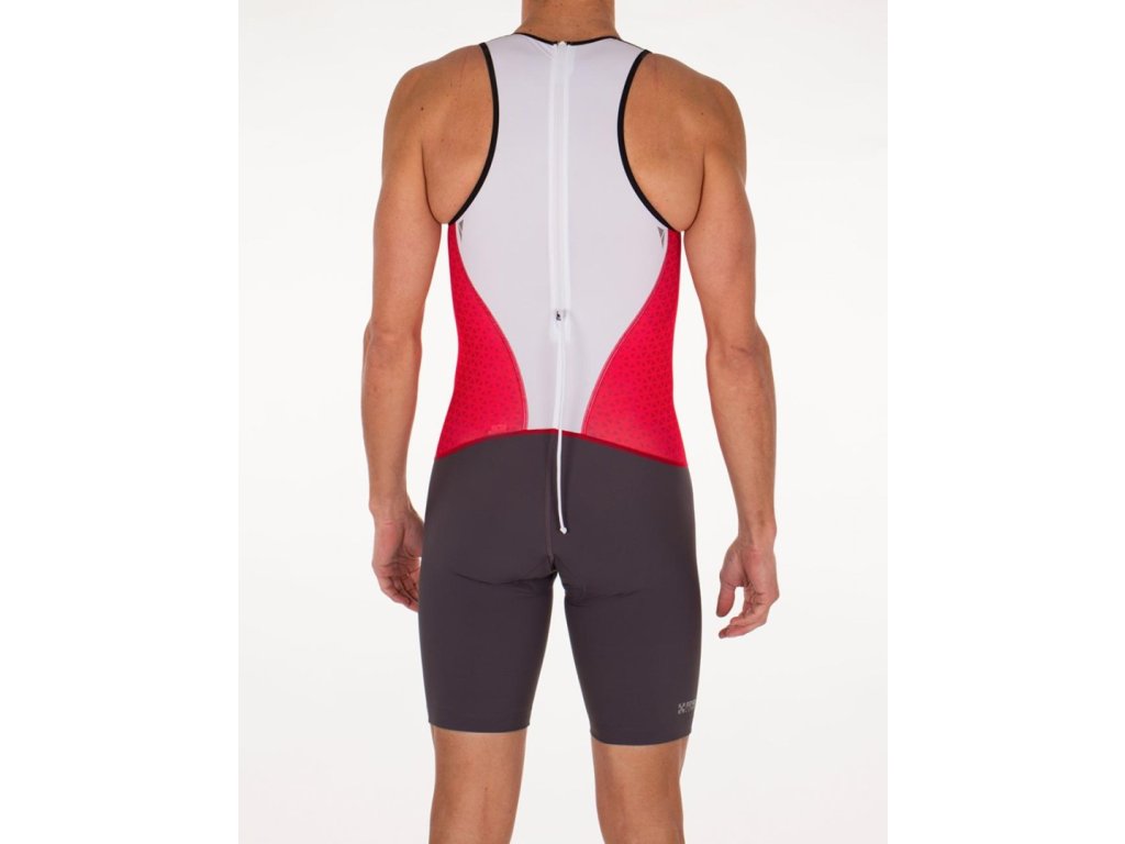 Pánská triatlonová kombinéza Dres Trisuit řady Racer byl navržen pro triatlonisty závodící na krátkých vzdálenostech. Díky nové Revo Comp technologii a extra plochým švům je tento triatlonový dres neuvěřitelně rychlý ve vodě i mimo ni, mimo to poskytuje mimořádnou svalovou podporu a snižuje bolestivost svalů. Je rychleschnoucí a zůstává na správném místě po celou dobu závodu. Obrácený zip na zádech poskytuje ventilaci v průběhu závodu, tripad speciálně navržený pro krátké vzdálenosti Vám zase pomůže zůstat v pohodlí na kole i při běhu. Technické parametry: silikonový grip na nohách zajišťuje perfektní polohu dresu a pohodlí; tkanina pro ochranu kůže před sluncem: UPF50+; rychleschnoucí tripad navržený pro závody na krátké vzdálenosti. Složení: 80 % polyamide, 20 % elastan. Vyrobeno v Portugalsku. TABULKA VELIKOSTÍDoplňkové parametry