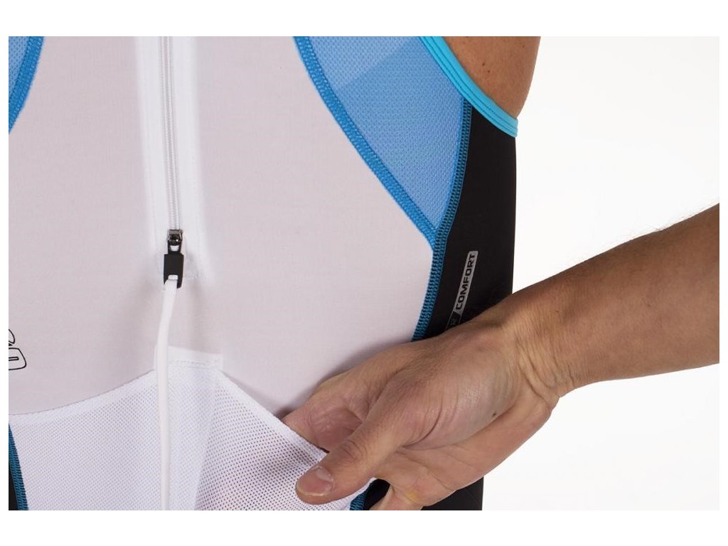 Pánská triatlonová kombinéza Model Start TRISUIT z roku 2018 nabízí skvělý poměr mezi cenou a kvalitou. Řada byla navržena pro triatlonisty a duathlety na všech soutěžních úrovních, od sprintů po vzdálenost Ironman. Dres je vyroben ze tkaniny Power Comfort, má jemně šité lemy kolem paží a krku, které ho dělají velmi měkkým a pohodlným. Je také neuvěřitelně rychlý ve vodě. Kapsy na zadní straně dresu jsou vhodné pro energetické doplňky, což činí model vhodný pro jakoukoliv vzdálenost. Vyrobeno ve Španělsku. TABULKA VELIKOSTÍDoplňkové parametry