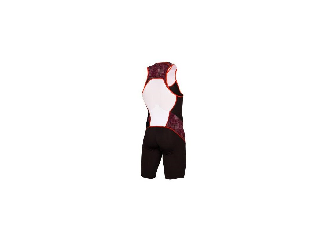 Pánská triatlonová kombinéza Dres Trisuit řady Racer byl navržen pro triatlonisty závodící na krátkých vzdálenostech. Díky nové Revo Comp technologii a extra plochým švům je tento triatlonový dres neuvěřitelně rychlý ve vodě i mimo ni, mimo to poskytuje mimořádnou svalovou podporu a snižuje bolestivost svalů. Je rychleschnoucí a zůstává na správném místě po celou dobu závodu. Obrácený zip na zádech poskytuje ventilaci v průběhu závodu, tripad speciálně navržený pro krátké vzdálenosti Vám zase pomůže zůstat v pohodlí na kole i při běhu. Technické parametry: silikonový grip na nohách zajišťuje perfektní polohu dresu a pohodlí; tkanina pro ochranu kůže před sluncem: UPF50+; rychleschnoucí tripad navržený pro závody na krátké vzdálenosti. Složení: 80 % polyamide, 20 % elastan. Vyrobeno v Portugalsku. TABULKA VELIKOSTÍDoplňkové parametry