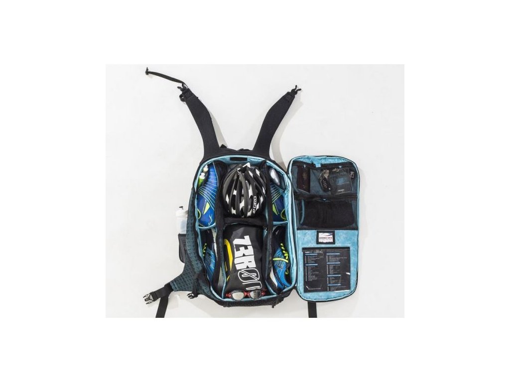 Batoh nejen pro triatlonisty. Batoh, který je konstruovaný speciálně pro triatlety pro přepravu veškerého vybavení na triatlonové závody nebo trénink. Díky celkem 16 kapsám, 6 samostatným přihrádkám, 1 voděodolným prostorem a několika popruhům a přezkám budete mít vše zorganizované a připravené na cestu! Každá přihrádka a kapsa je snadno rozpoznatelná díky svému označení. Kontrolní seznam triatlonového vybavení uvnitř batohu zajistí, že na nic nezapomenete. Použití těch nejlepších materiálů, laserové výřezy, perforovaná EVA, 3D Mesh, vysoce kontrastní podšívka jsou tím, co dodává tomuto batohu Transition Bag jeho úžasný vzhled! Parametry: - 10 kapes s přímým přístupem z vnější strany batohu, včetně 3 neoprenových kapes na ochranu nejcennějších a nejkřehčích věcí, a 2 postranních kapes na 750 ml bidony - 1 voděodolná přihrádka s laserem vyřezávanou síťovinou Grid Mesh s přímým přístupem z vnější strany tašky pro váš neoprén - Bederní pás obsahující i 2 kapsičky na zip - Hlavní prostor rozdělený na 6 nezávislých dílčích oddílů + 2 skryté kapsy na zip + 3 ploché kapsy na zip + 1 průhledná plochá kapsa včetně konrolního seznamu triatlonového vybavení - Anatomické polstrování zad s odvětrávanou 3D síťovinou pro maximální pohodlí - Popruh + přezka pro svislé uložení na nosičích kol nebo trvalé uložení doma - Popruhy pro pumpičku - Štítky pro označení jednotlivých kapes a přihrádek - Vysoce kontrastní podšívka pro rychlý a snadný přístup k menším předmětům - Kapacita: 60 litrů - Rozměry (bez popruhů a přezek) 35 x 65 x 25 cm - 420D nylon s povrchovou úpravou a 210D nylon s plástvovitým tvarem - Perforovaný materiál EVA - Neopren - 3D síťovina a nylonová mřížka - Reflexní prvky pro horší světelné podmínky - Složení: 80% polyester, 20% EVA - Vyrobeno v ČíněDoplňkové parametry