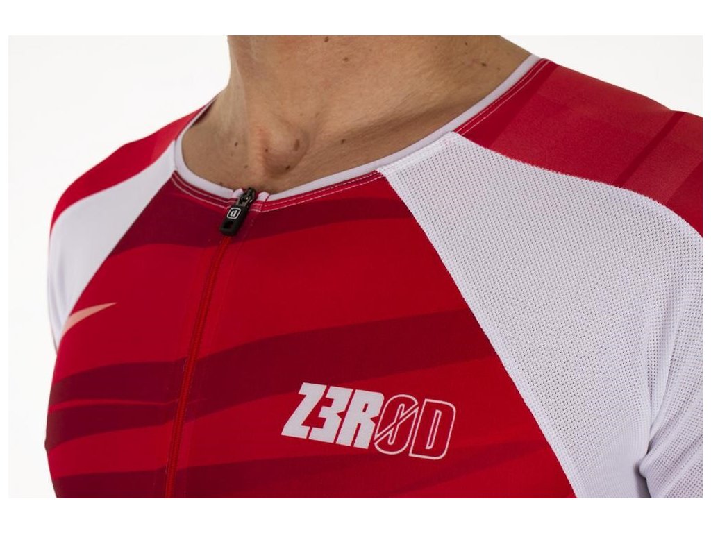 Pánská triatlonová kombinéza s krátkým rukávem Dres TTSUIT byl navržen pro triatlonisty závodící na delších vzdálenostech. Svršek byl navržen ve vestovém stylu, což spolu s ultralehkou a elastickou tkaninou znatelně ulehčuje oblékání a svlékání dresu. Zip a grip na spodním lemu navíc zajistí, že dres zůstane na správném místě po celou dobu závodu. Dres je vhodný pro podávání těch nejvyšších triatlonových výkonů. Byl speciálně navržen pro zvýšení aerodynamické efektivity, což pocítíte především při závodě. Svršek disponuje krátkým rukávem překrývajícím biceps, čímž ho chrání před vnějšími vlivy jako je déšť nebo vítr. Přidáním rukávu je navíc dosaženo daleko lepší aerodynamiky v porovnání s nahou kůží, což zajisté oceníte v cyklistické části triatlonu. V oblasti ramenou a paží je dres vyroben z tkaniny Ultra Light Skin, která zajišťuje pohodlí, zatímco materiál Dry Tech Mesh na zádech dokonale odvádí pot, ventiluje a udržuje kůži v suchu a teple. Nová technologie Revo Comp poskytuje nohám perfektní svalovou podporu a maximální volnost pohybu. Díky anatomicky střiženým panelům na bocích dres velmi dobře padne. Dvě anatomicky střižené kapsy v zadní části dresu Vám umožní si sebou vzít energetické doplňky a zároveň nenaruší Vaši aerodynamiku. Technické parametry: - 40cm zip pro ultra rychlé oblékání a lepší pohyblivost. Dvojité šití z vnitřní strany zaručuje maximální odolnost a pohodlí, nechybí ani funkce stop-lock, díky které zůstane jezdec ve Vámi nastavené pozici; - jemný lem okolo krku a rukávů pro zlepšení aerodynamiky a maximální komfort; - silikonový lem na nohavicích udrží dres na správném místě při cyklistické části závodu; - ochrana proti slunci díky tkanině Water Wear Weapon: UPF50+; - semišový tripad s gelem uvnitř je rychleschnoucí, extrémně elastický, antibakteriální a zároveň velmi efektivní pro jízdu na kole a pohodlný při běhu. Složení: 80 % polyamid, 20 % elastan. Vyrobeno v Portugalsku. TABULKA VELIKOSTÍDoplňkové parametry