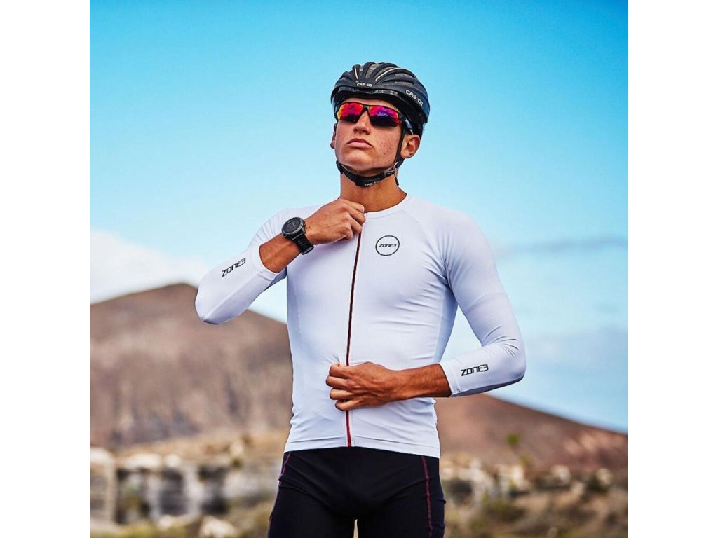 ZONE3 Pánský triatlonový top Zone3 Lava Aero 3/4 Sleeve Warmth Top - WHITE/RED